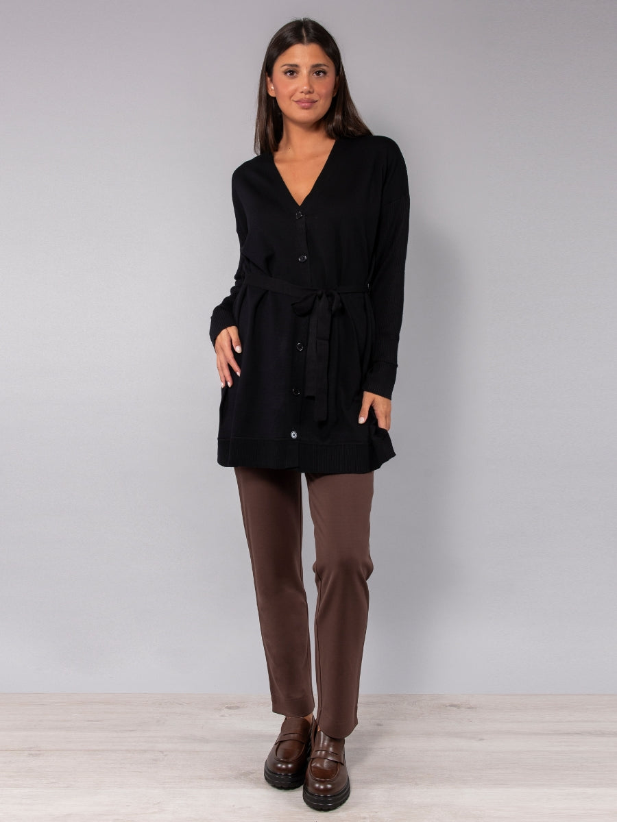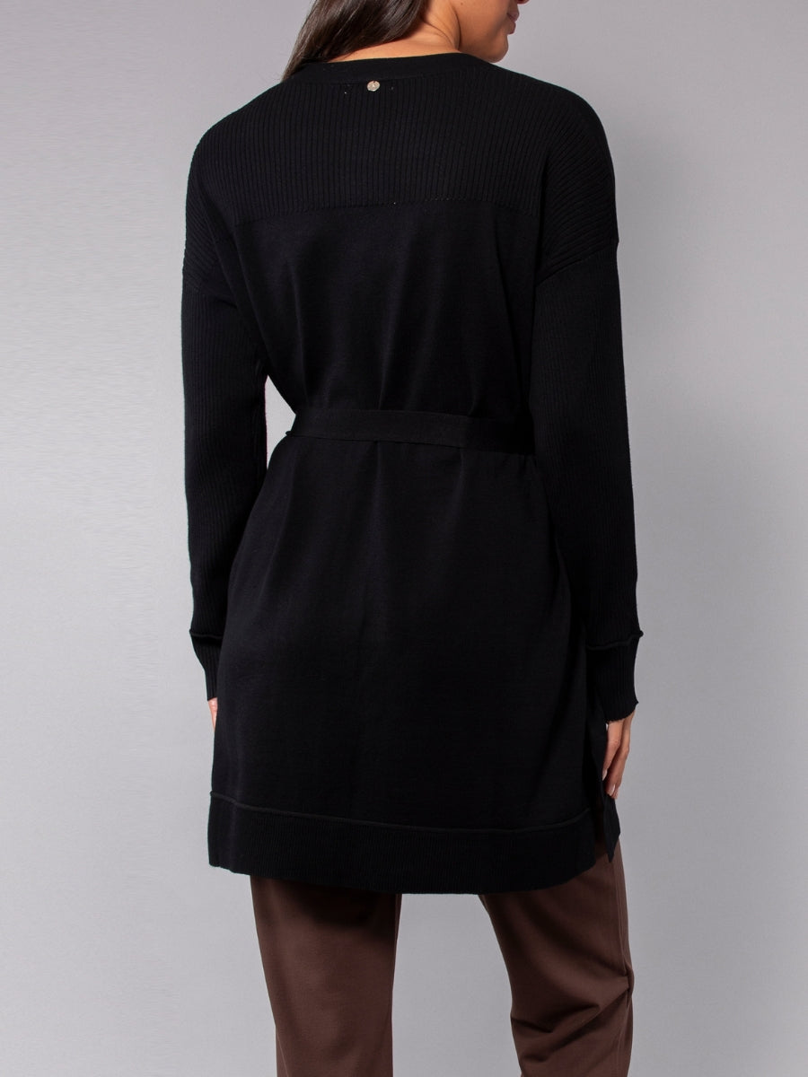 Cardigan lungo con cintura - NERO - BE70