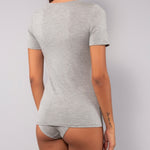 T-shirt scollo a V in modal - GRIGIO MELANGE - HU53