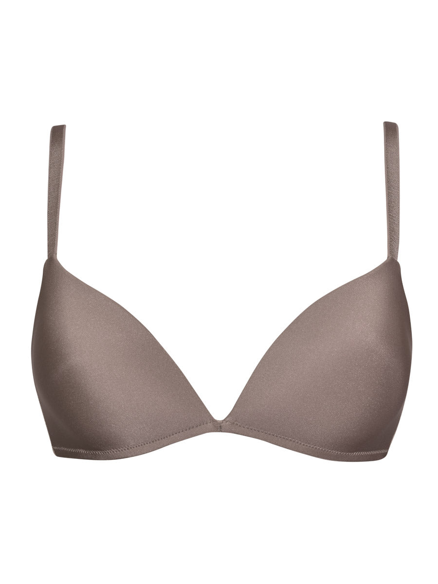 Reggiseno a triangolo con coppe imbottite e senza ferretto realizzato in morbida microfibra satin per uno stile basic e allo stesso tempo luxury. L'imbottitura valorizza il seno garantendo allo stesso tempo il comfort di un liscio ultra-light e invisible. Texture e design privi di imperfezioni, contemporanei e puri.
