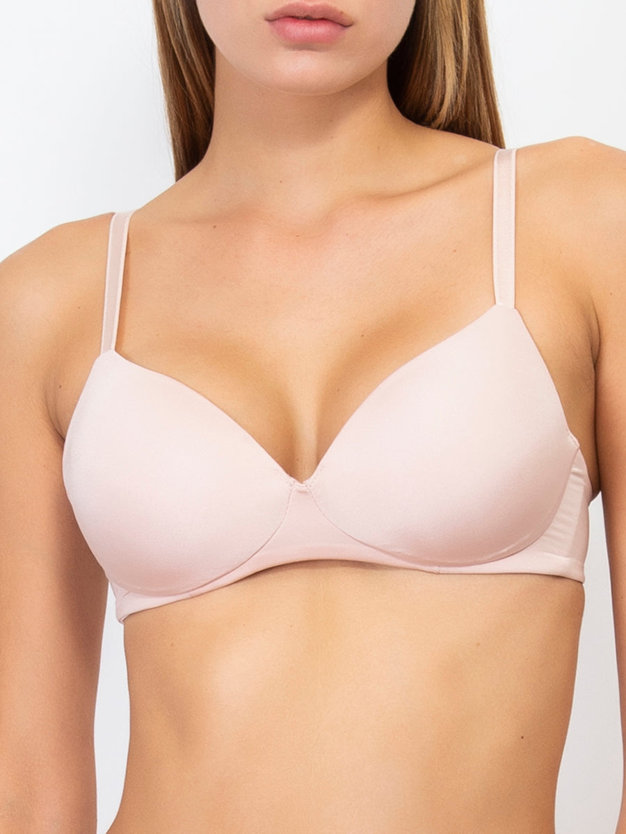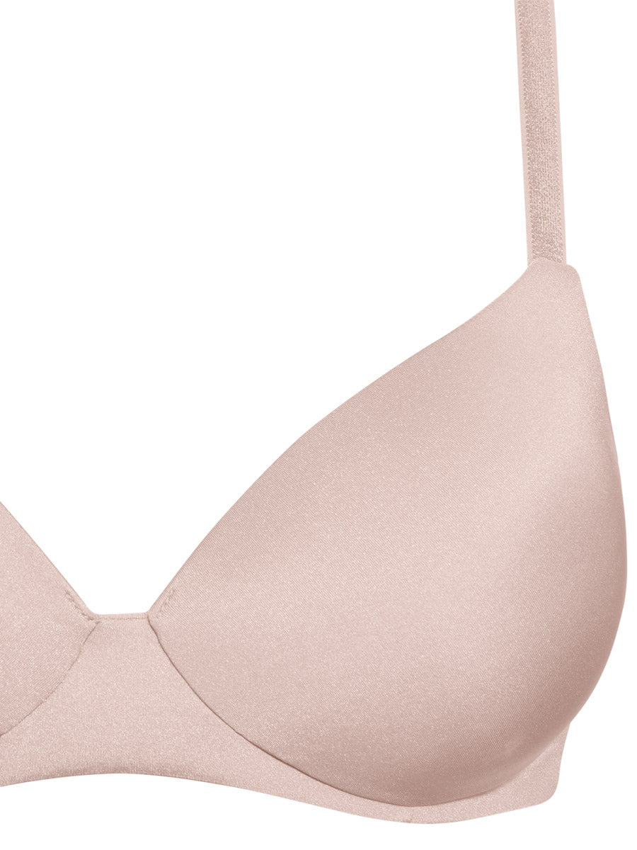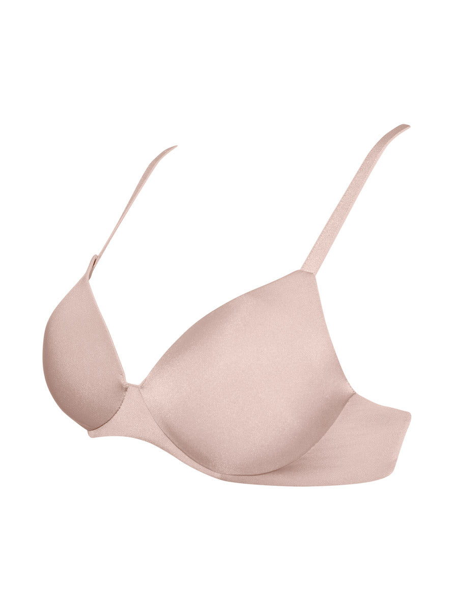 Reggiseno con coppe graduate senza ferretto realizzato in morbida microfibra satin per uno stile basic e allo stesso tempo luxury. L'imbottitura graduata valorizza il seno garantendo allo stesso tempo il comfort di un liscio ultra-light e invisible. Texture e design privi di imperfezioni, contemporanei e puri.