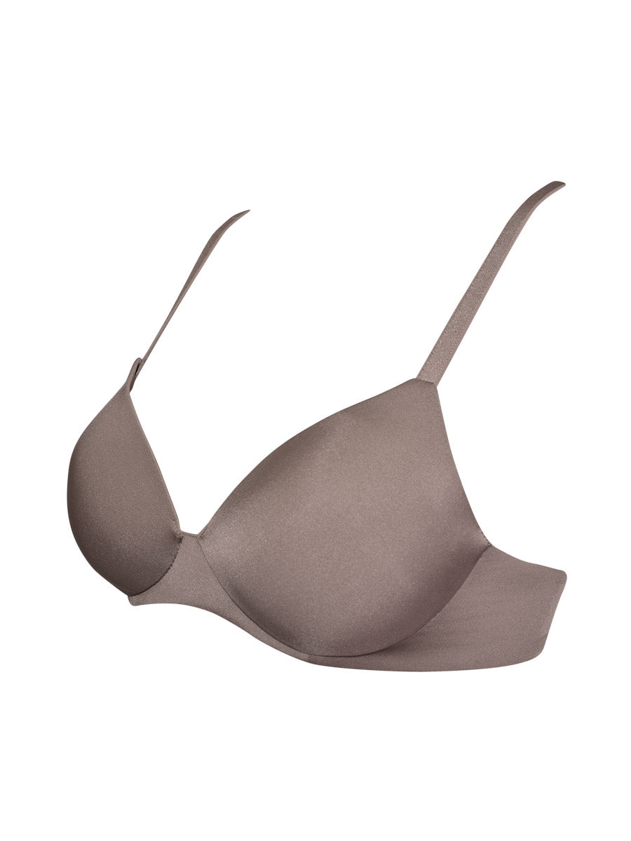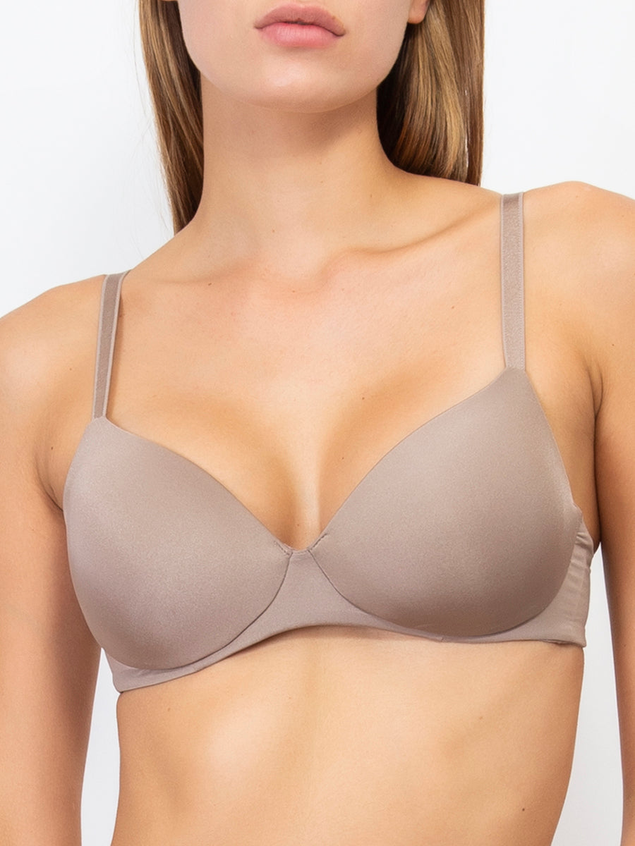 Reggiseno con coppe graduate senza ferretto realizzato in morbida microfibra satin per uno stile basic e allo stesso tempo luxury. L'imbottitura graduata valorizza il seno garantendo allo stesso tempo il comfort di un liscio ultra-light e invisible. Texture e design privi di imperfezioni, contemporanei e puri.