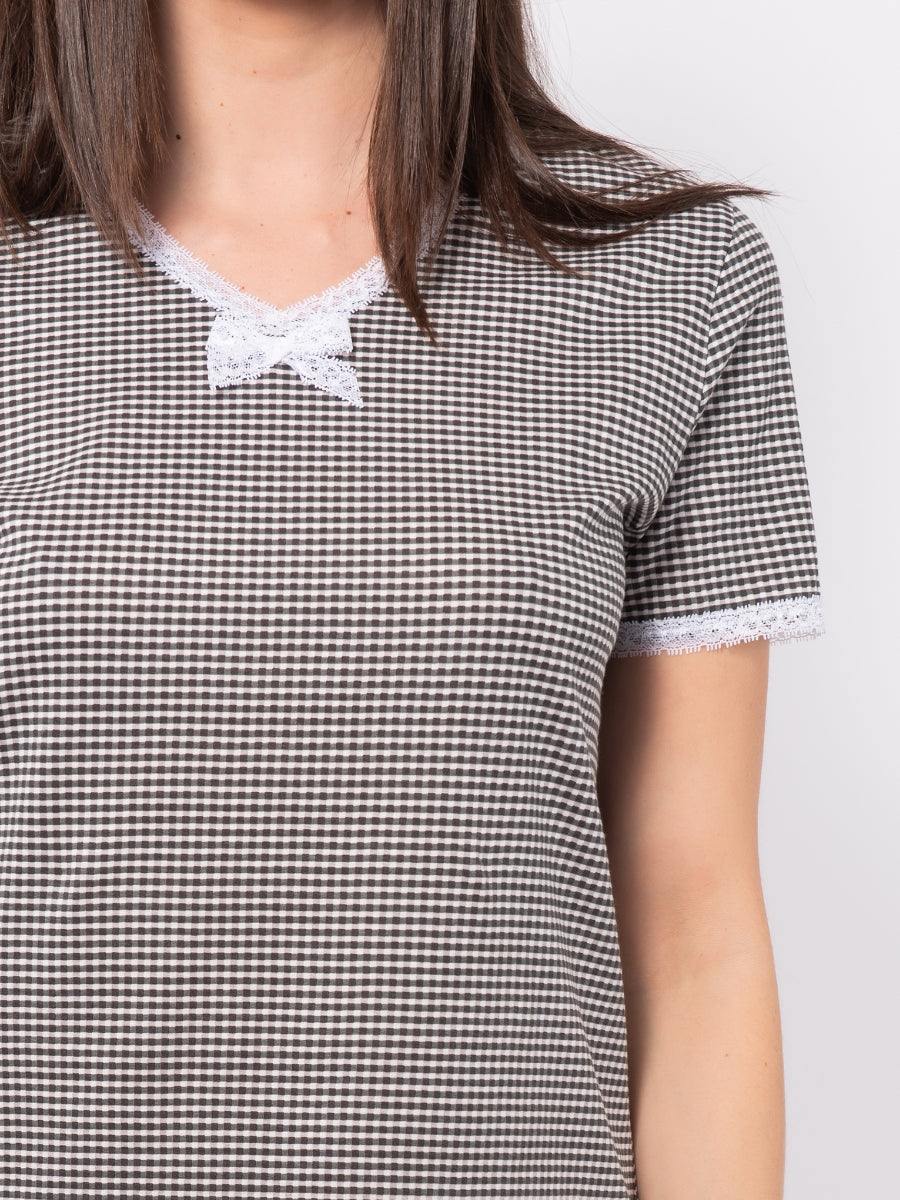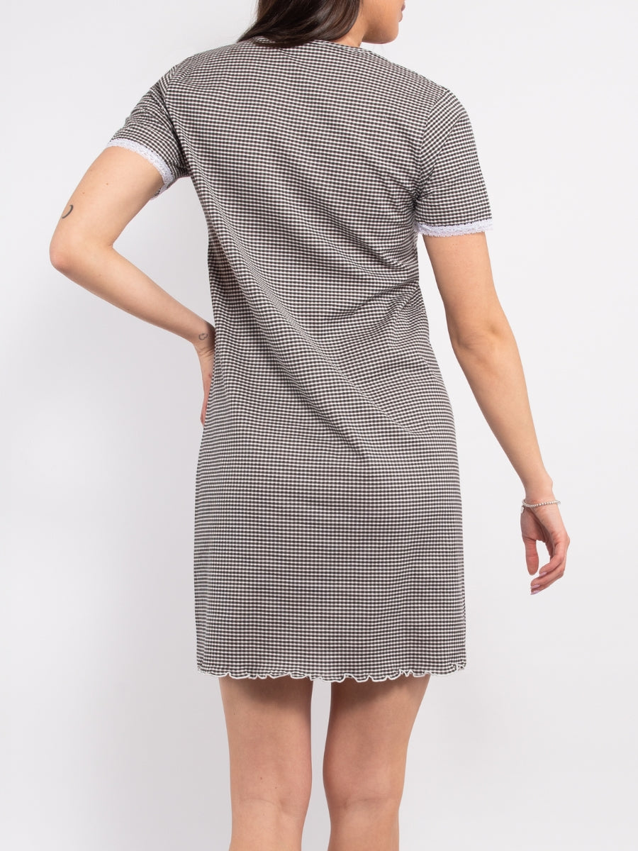 Camicia da notte da donna con scollo a V, realizzata in 100% cotone, fresco e naturale. La stampa micro-vichy, reinterpretata in chiave romantica e contemporanea, regala un tocco femminile e senza tempo.