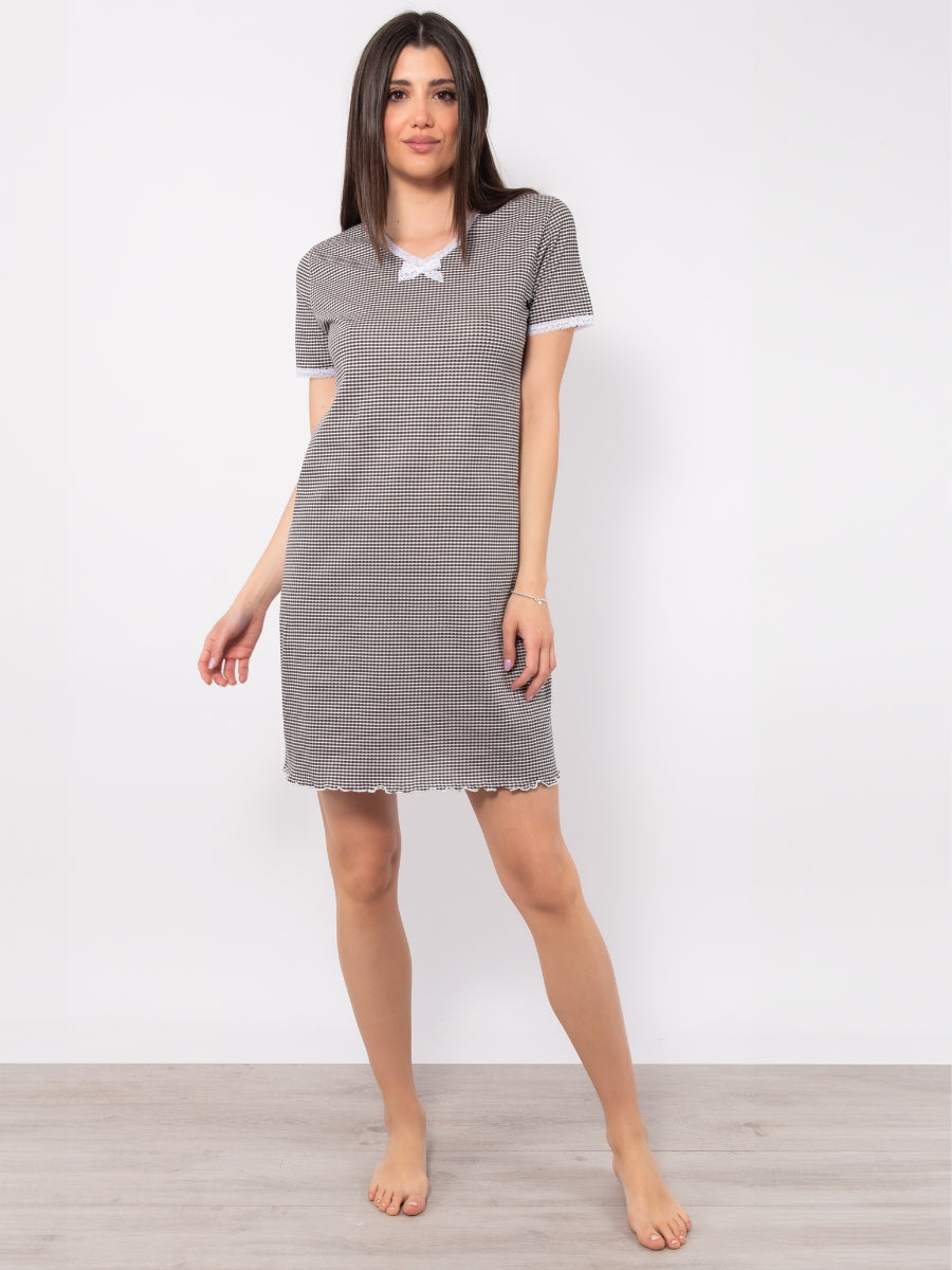 Camicia da notte con scollo a V a manica corta in cotone - VH27