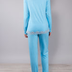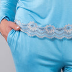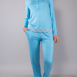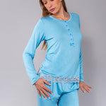 Pigiama Serafino Lungo in Viscosa e Pizzo - AZZURRO - PR11