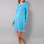 Camicia da Notte Serafino Corta in Viscosa e Pizzo - AZZURRO - PR27