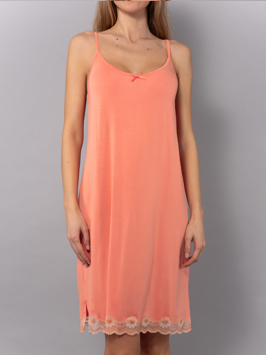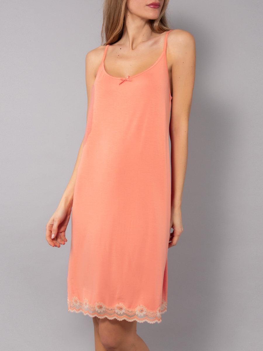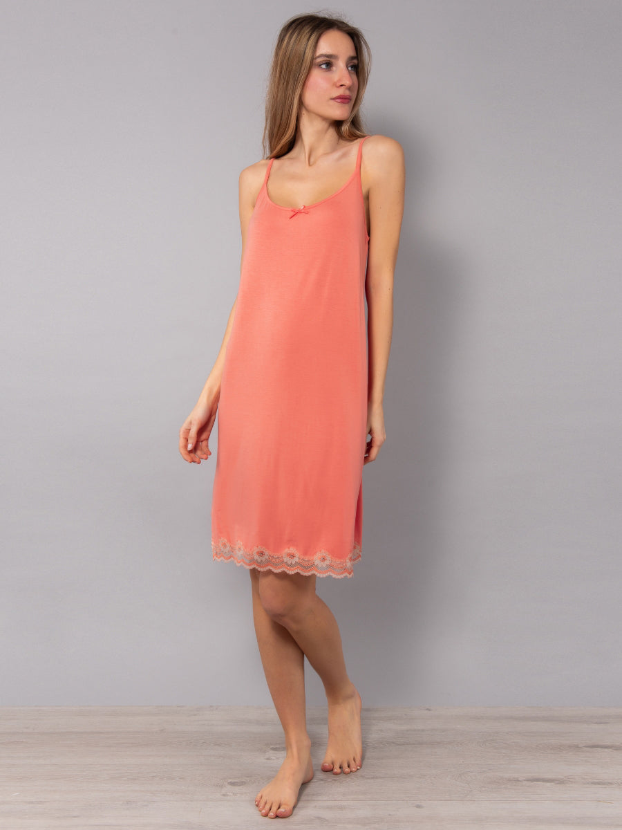 Camicia da Notte Corta Spallina in Viscosa e Pizzo - PR29