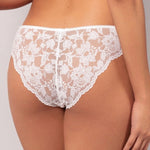 Realizzato in un pizzo floreale morbido e confortevole, questo slip assicura una vestibilità perfetta ideale per l'uso quotidiano. Il disegno ricco e grafico del pizzo esprime una femminilità contemporanea e sofisticata. Ideale da coordinare con le diverse parti alte della collezione per un look completo e di carattere.