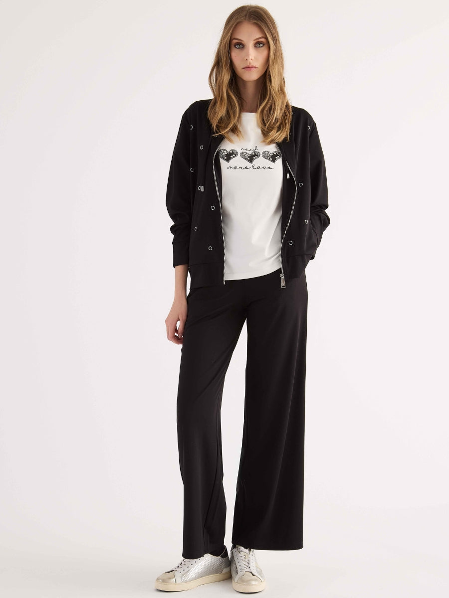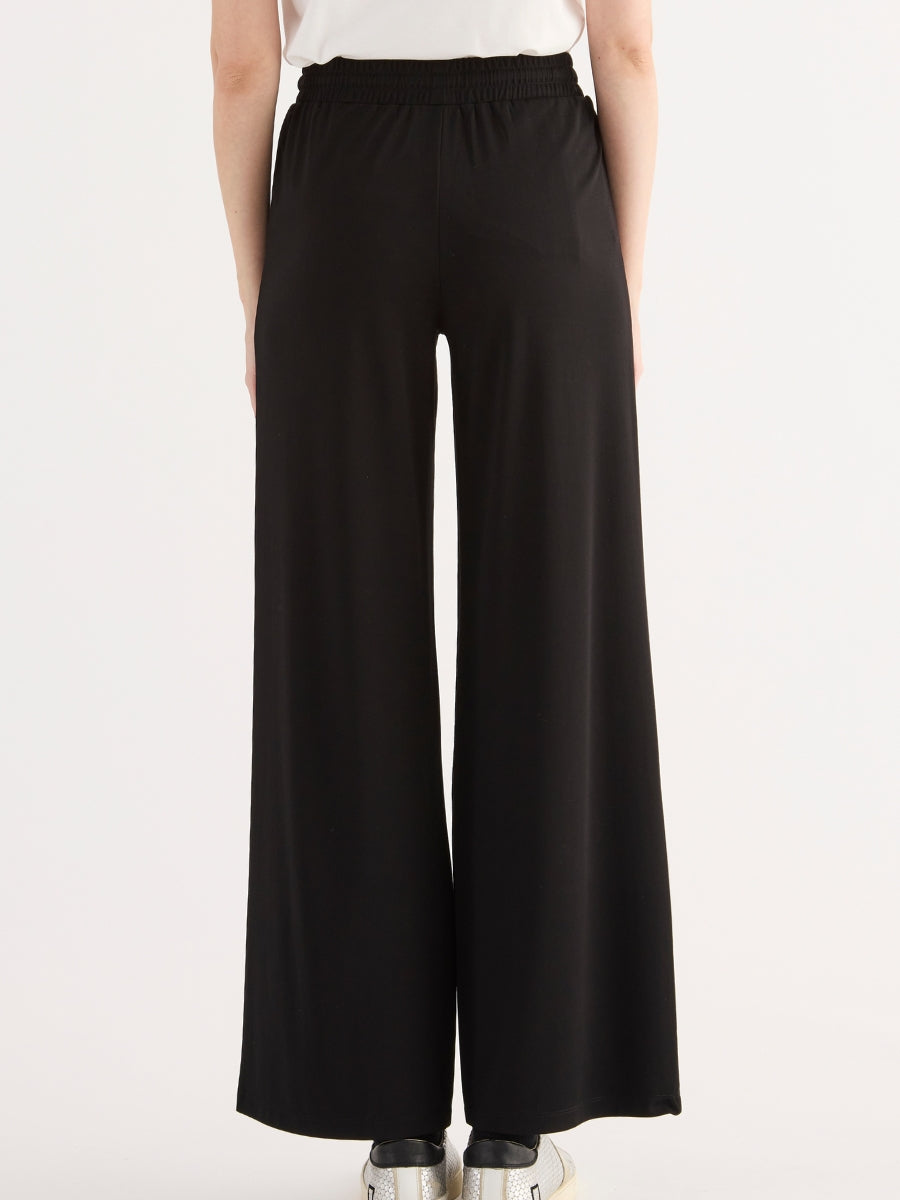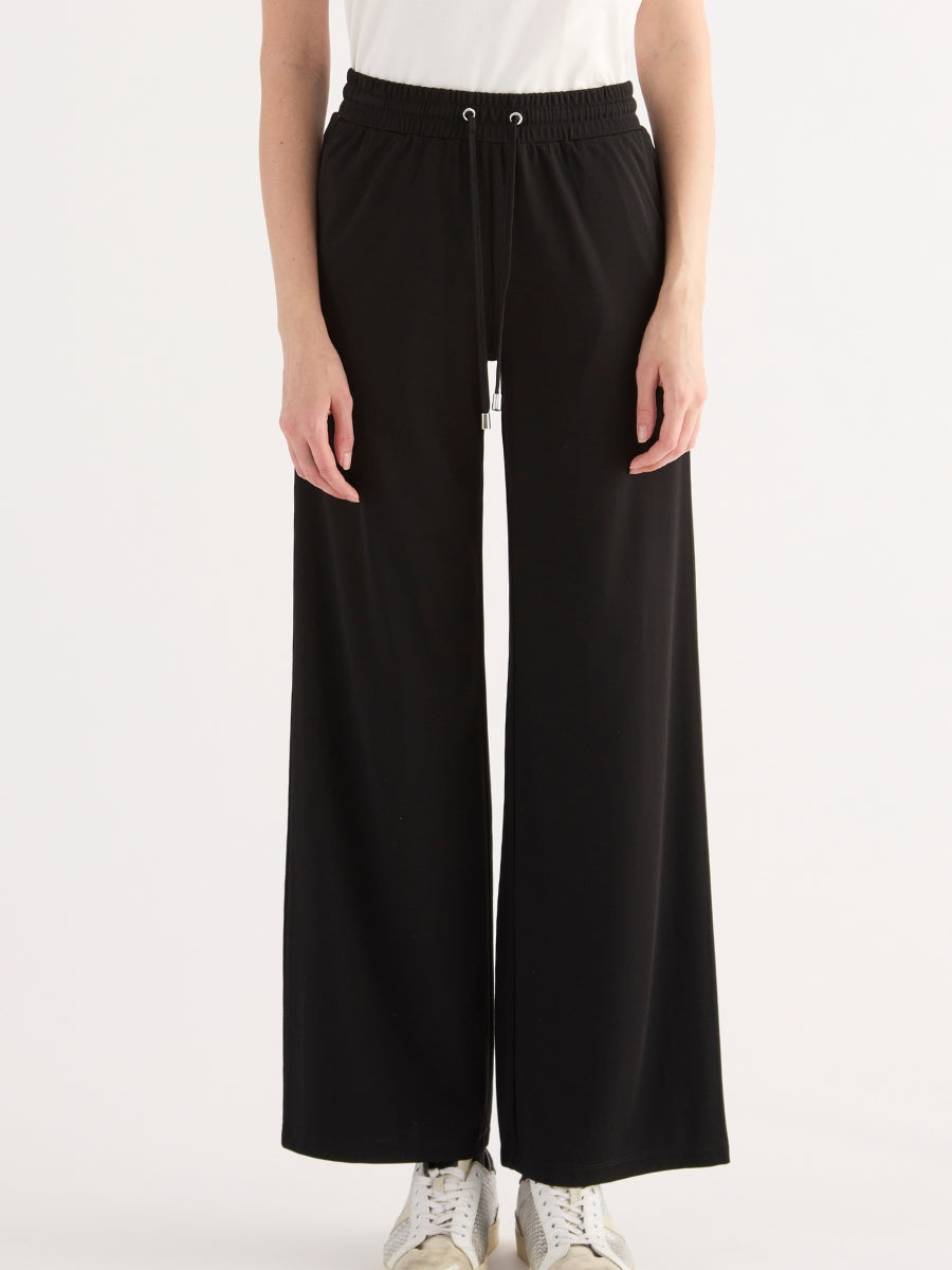 Pantaloni realizzati in morbido modal, caratterizzati da una linea fluida e scivolata che assicura comfort e libertà di movimento. Il modello presenta un design essenziale con gamba ampia, pratiche tasche laterali e vita elasticizzata con coulisse. Un capo versatile e contemporaneo, ideale per creare look casual e sportivi.
