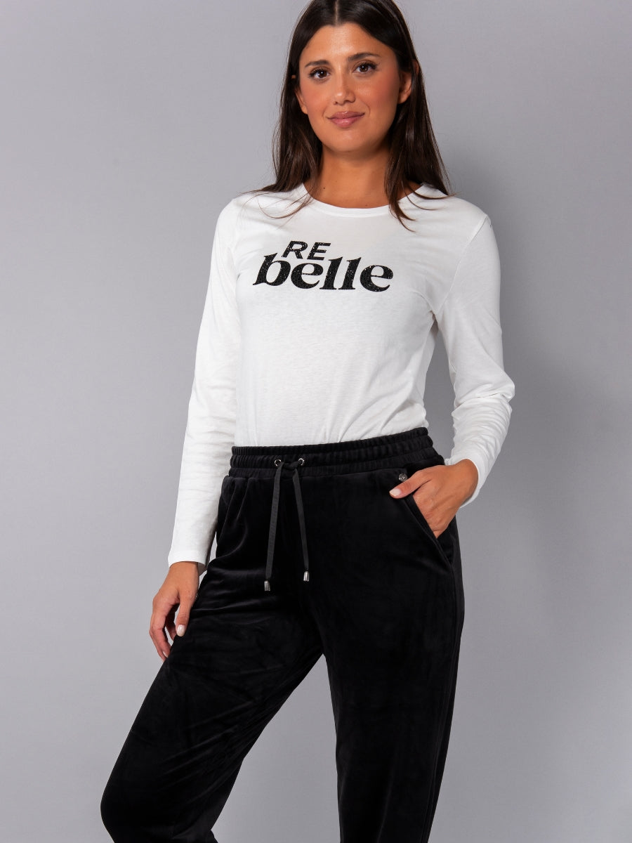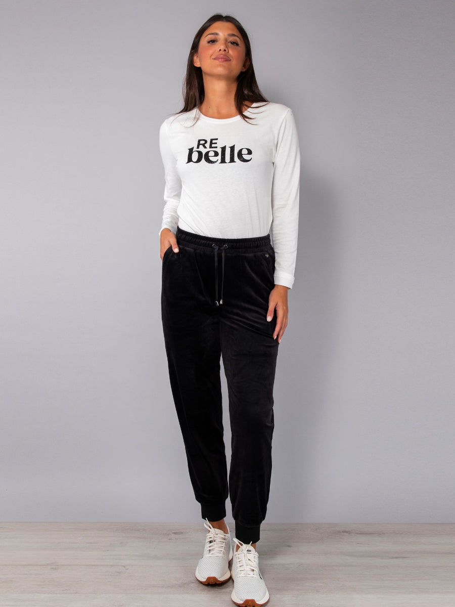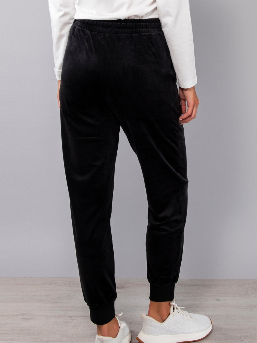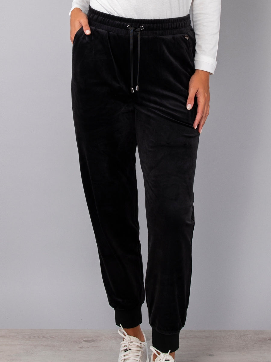 Pantaloni in ciniglia, morbida e scivolata, con polsini e tasche. Il capo è perfetto per creare un look sporty-chic, ideale da indossare con felpe e maglie in coordinato.
