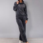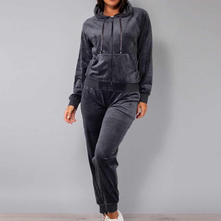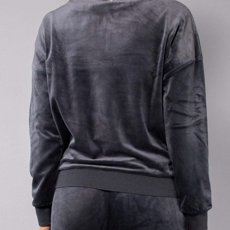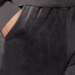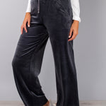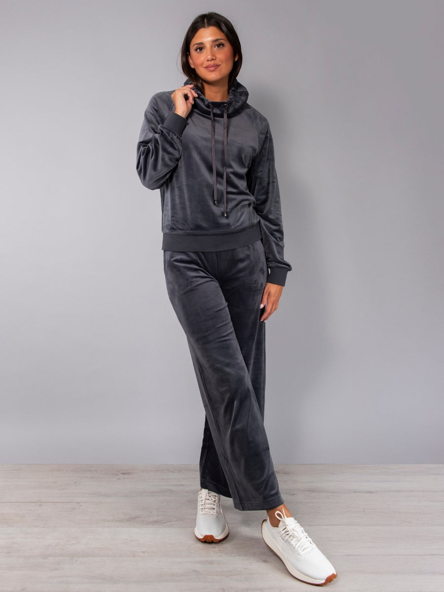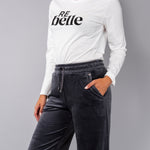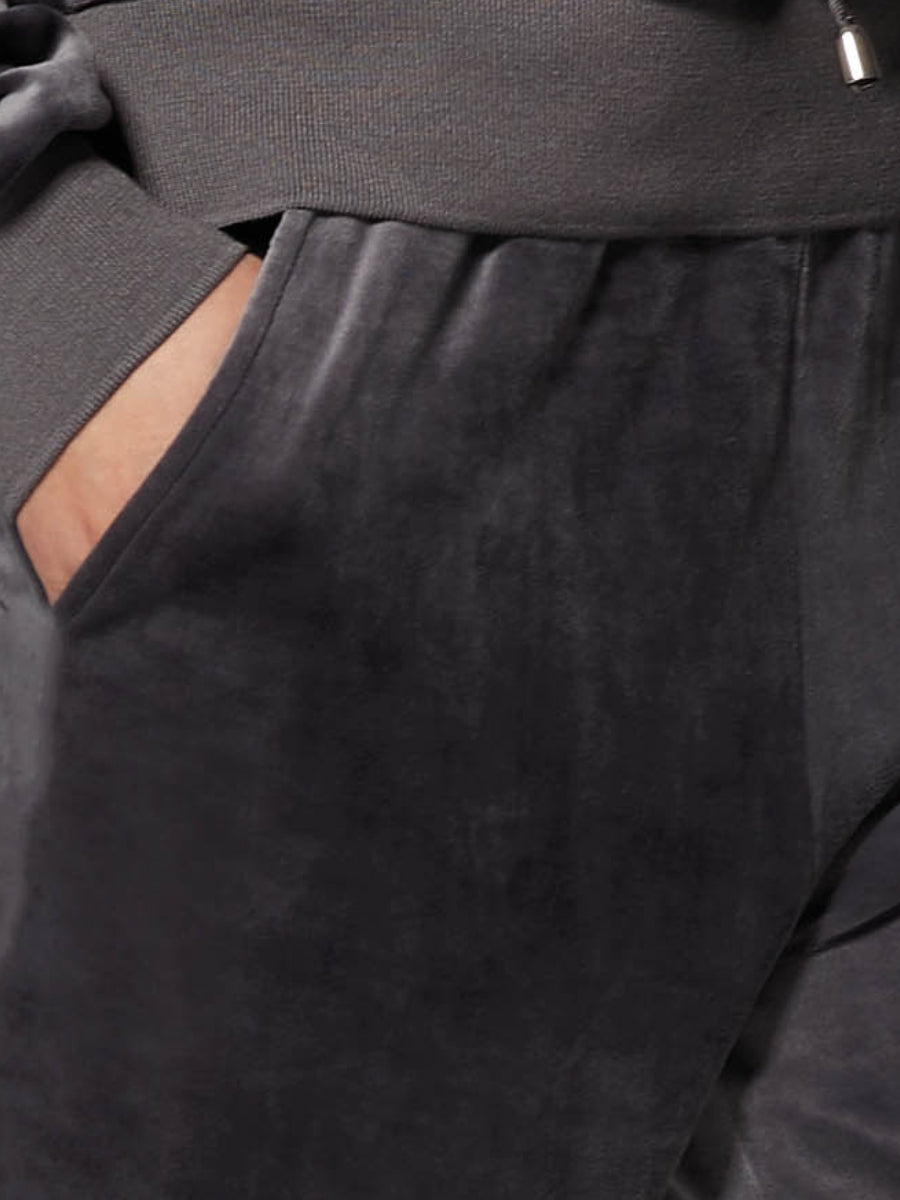 Pantaloni a gamba larga in ciniglia, morbida e scivolata, con tasche e strass. Il capo è perfetto per creare un look sporty-chic, ideale da indossare con felpe e maglie in coordinato.