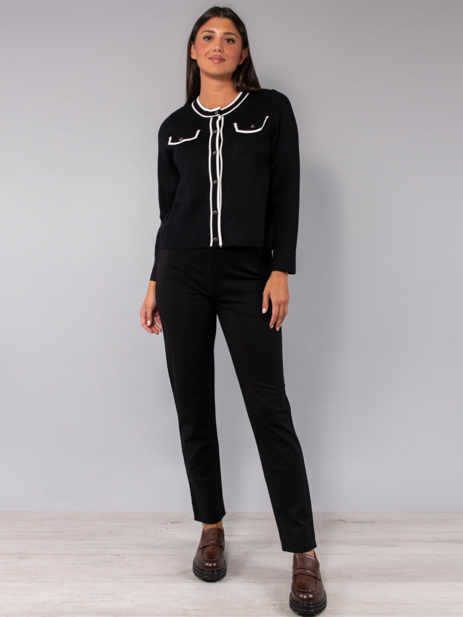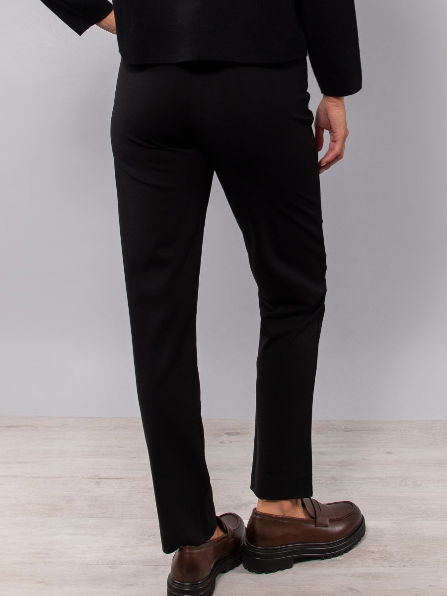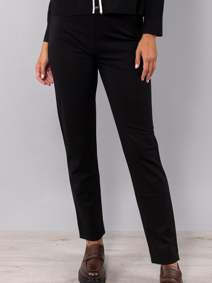 Il pantalone a gamba dritta in tessuto elasticizzato offre una vestibilità aderente senza rinunciare al comfort quotidano.