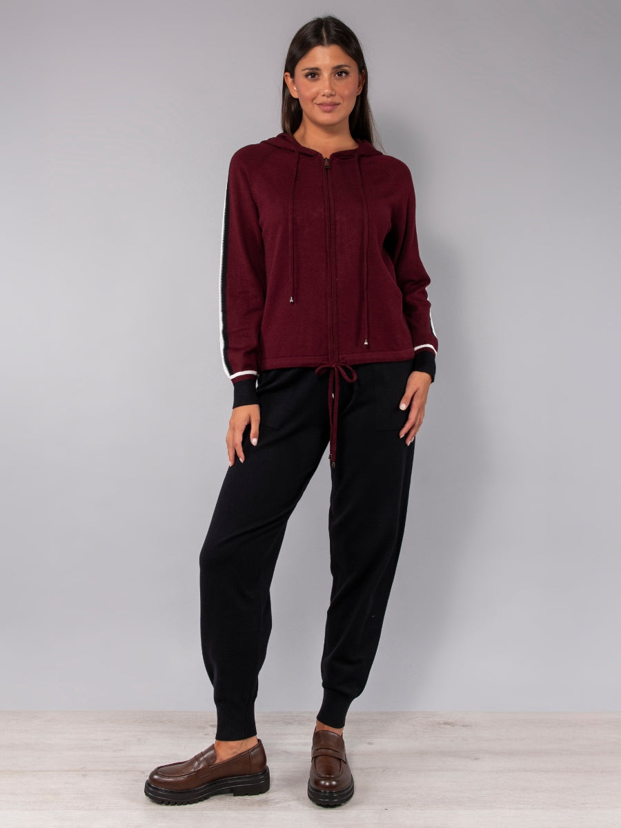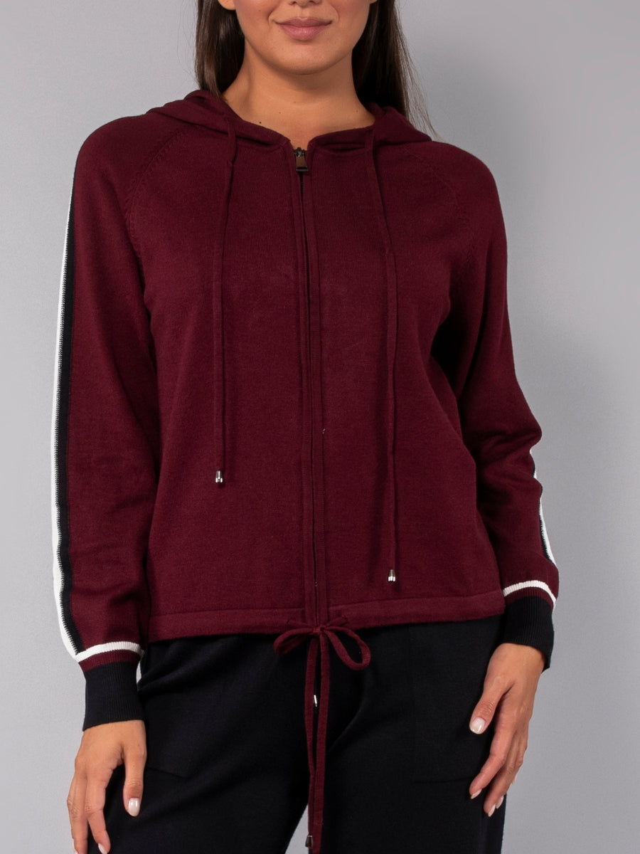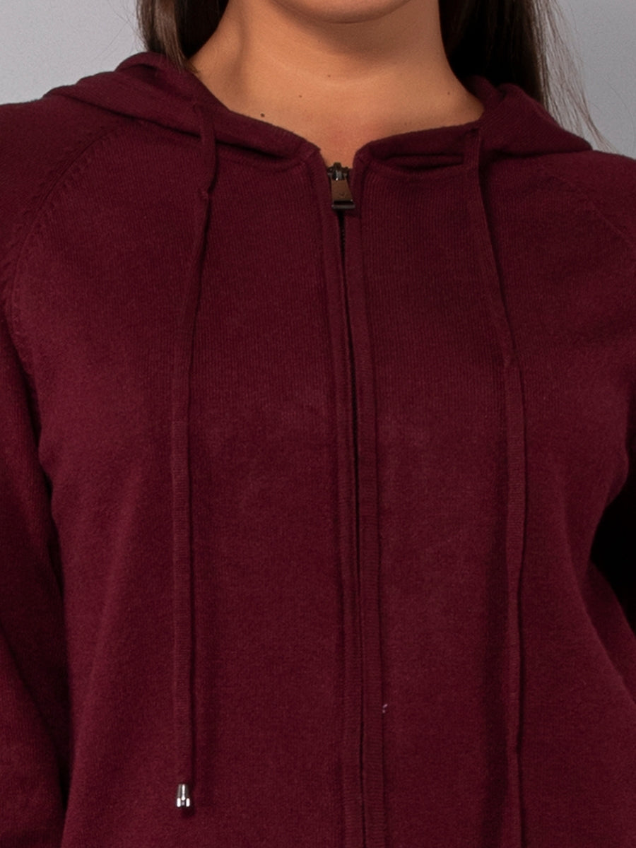 Felpa con zip e cappuccio a costine - BORDEAUX - HA51