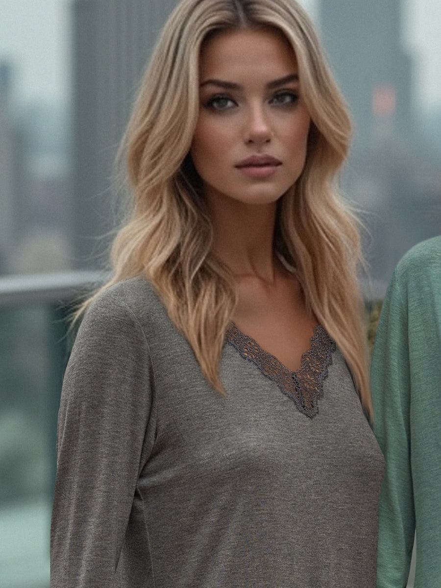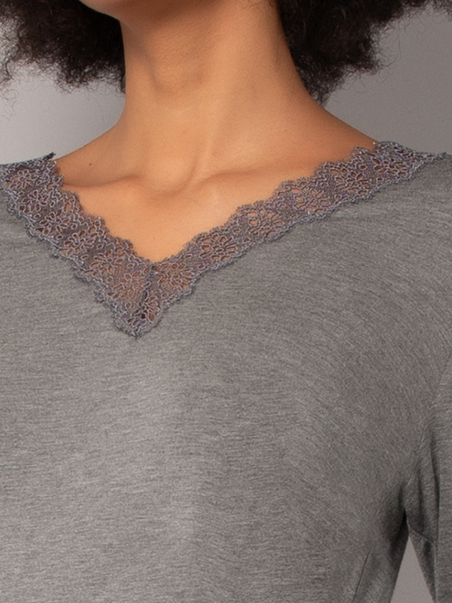 Pigiama scollo a V - GRIGIO SCURO MELANGE - A - GRIGIO SCURO MELANGE - MC12