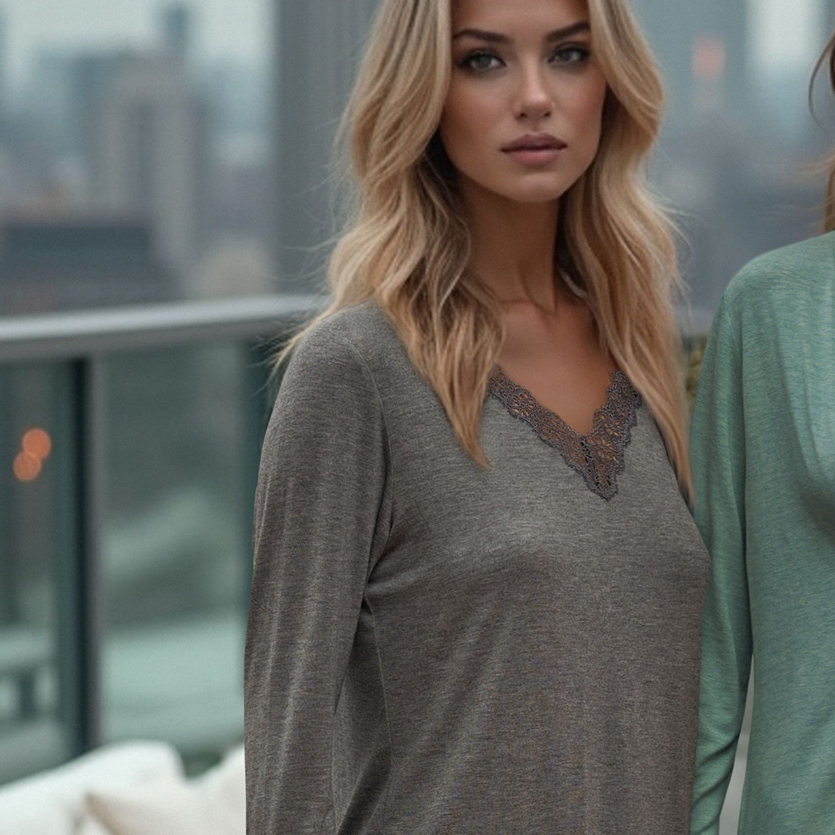 Pigiama serafino - GRIGIO SCURO MELANGE - A - GRIGIO SCURO MELANGE - MC11