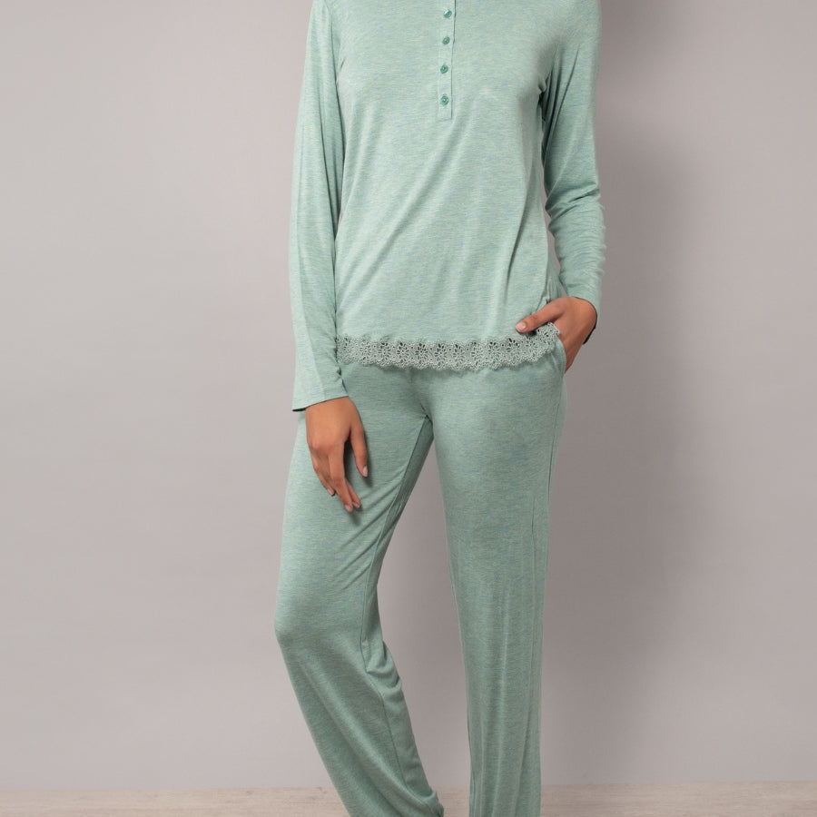 Pigiama scollo a V - SALVIA MELANGE - A - SALVIA MELANGE - MC12