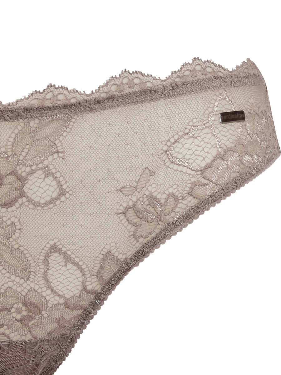 Slip in morbido pizzo con raffinata trama floreale. Lo slip ideale per uno stile romantico e raffinato. Crea infinite combinazioni con i reggiseni in pizzo e in microfibra in nuance.