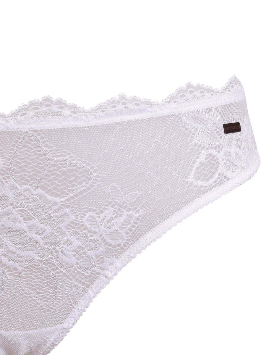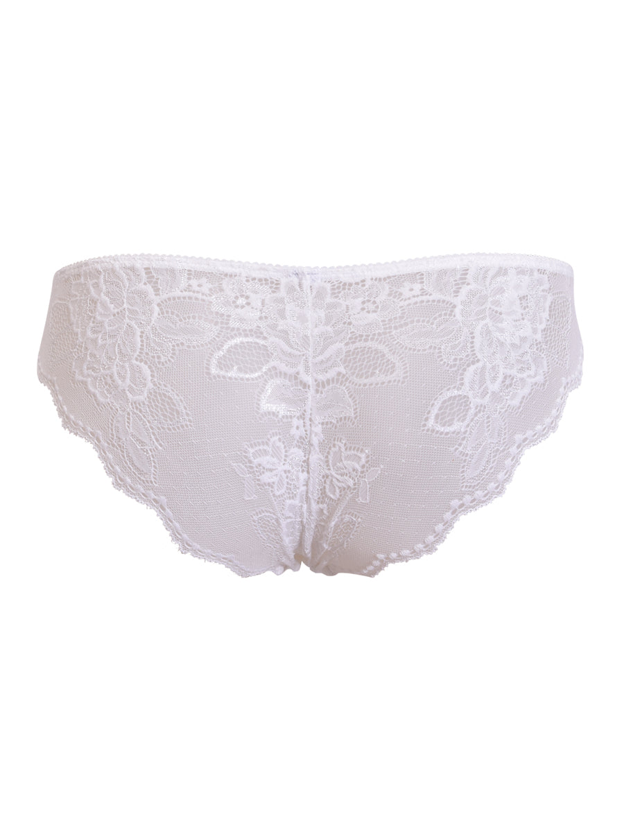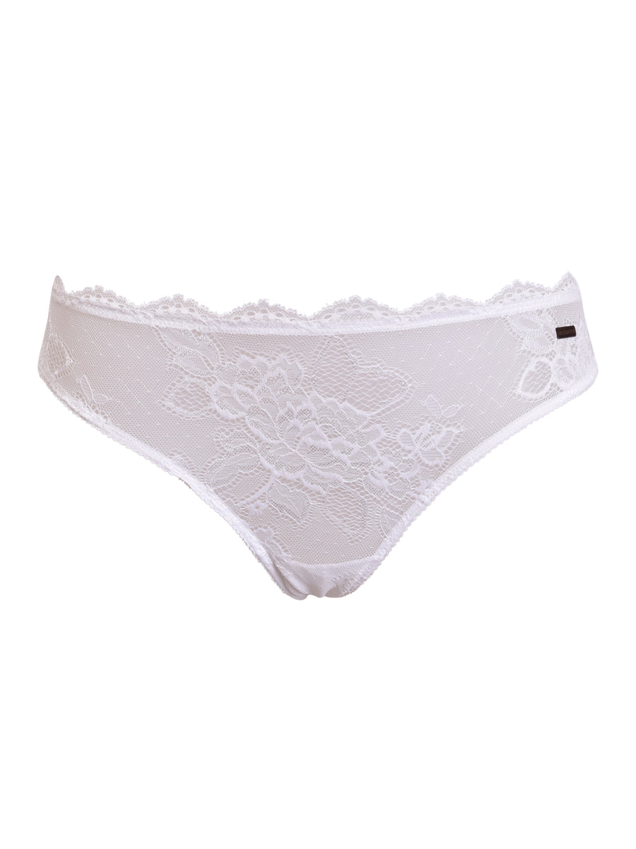 Slip in morbido pizzo con raffinata trama floreale. Lo slip ideale per uno stile romantico e raffinato. Crea infinite combinazioni con i reggiseni in pizzo e in microfibra in nuance.