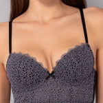 Il bustier della serie Macramè unisce stile e raffinatezza. Le coppe imbottite valorizzano il décolleté con effetto volume, mentre il ferretto assicura un elevato sostegno. Realizzato in pizzo macrame e microfibra elasticizzata, è disponibile nelle eleganti tonalità tortora, salvia e nero che esaltano la lavorazione del tessuto.