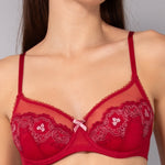 Reggiseno francese con ferretto in tulle ricamato - CILIEGIA - OF22