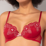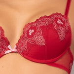 Reggiseno push-up con ferretto in tulle ricamato - CILIEGIA - OF24