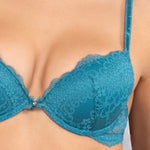 Il reggiseno push-up della serie Vintage con coppe imbottite e ferretto è progettato per valorizzare il décolleté con un effetto volume e modellante. Realizzato in delicato pizzo, è impreziosito da un piccolo punto luce centroseno.