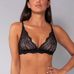 Il reggiseno a triangolo non imbottito e senza ferretto della serie Vintage è realizzato in morbido pizzo con motivo floreale e arricchito da un piccolo punto luce centro seno che laggiunge un tocco di femminilità discreta. La vestibilità morbida e leggera lo rende perfetto per un comfort quotidiano e naturale senza rinunciare allo stile.