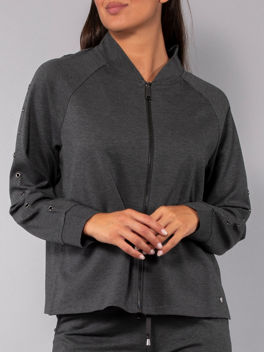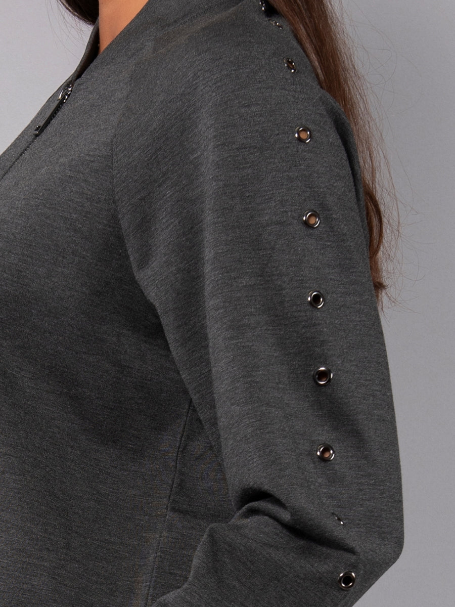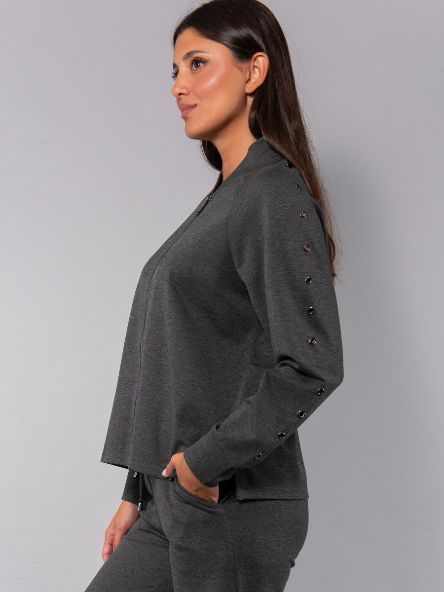 Felpa con zip e borchie - GRIGIO MELANGE - MA50