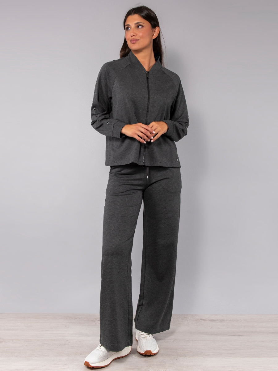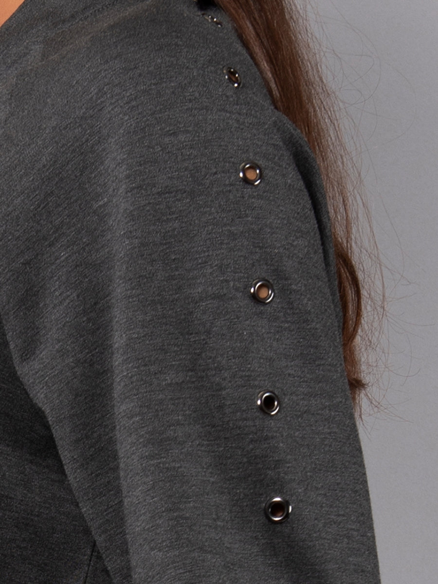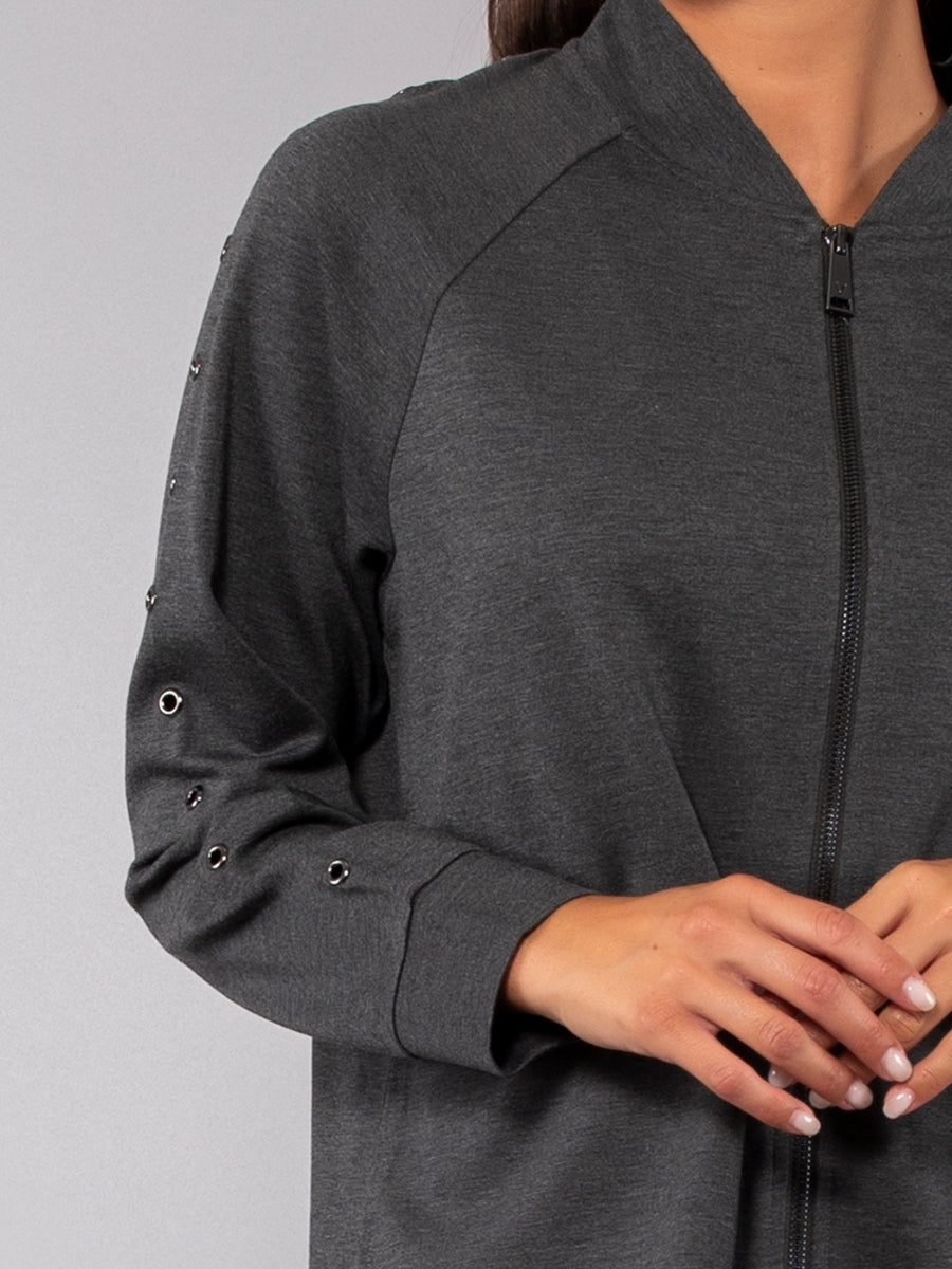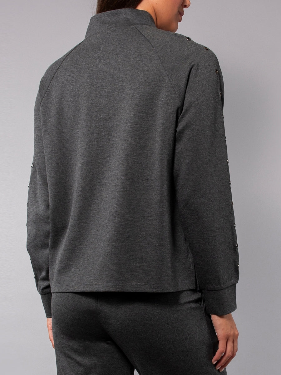 Felpa con zip e borchie - GRIGIO MELANGE - MA50
