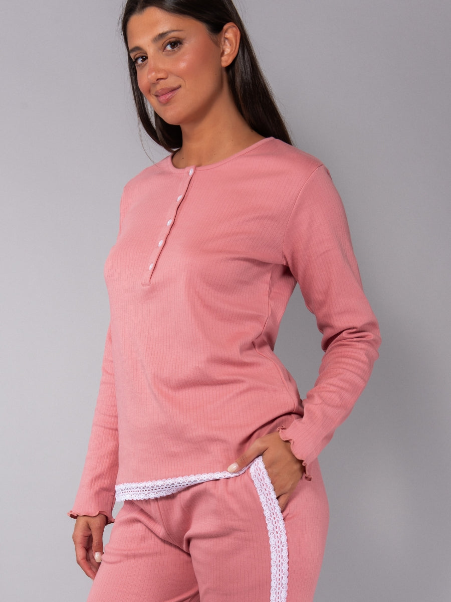 Pigiama serafino - ROSA ANTICO - A - ROSA ANTICO - FE11
