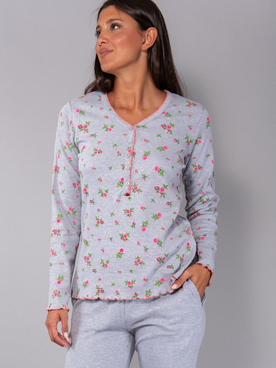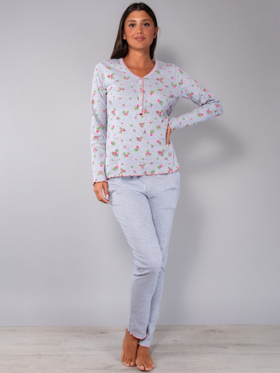Pigiama serafino - GRIGIO MELANGE - A - GRIGIO MELANGE - HB11