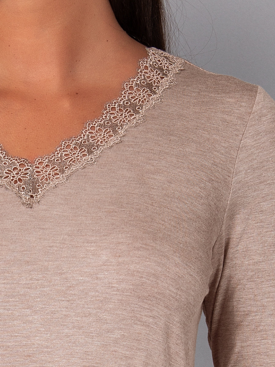 Camicia da notte scollo a V L 90 - TORTORA MELANGE - A - TORTORA MELANGE - MC28