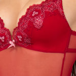 Il body della serie Old Fashion unisce il fascino del tulle trasparente al ricamo floreale in pizzo a contrasto, protagonista assoluto del design. Le coppe imbottite modellano e valorizzano il décolleté, mentre la struttura avvolgente esalta naturalmente le forme. Privo di ferretto per un comfort naturale.