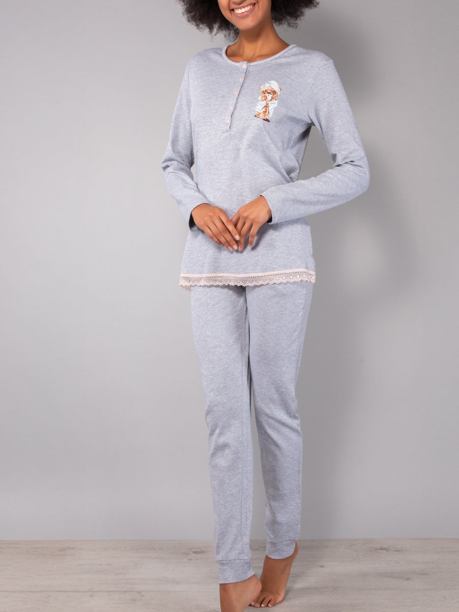 Pigiama serafino - GRIGIO MELANGE - M - GRIGIO MELANGE - TE11