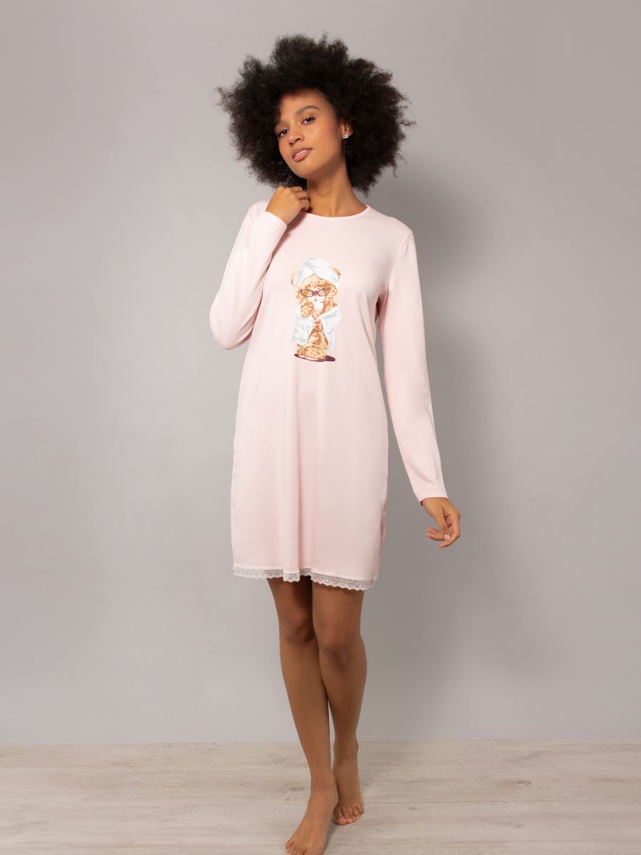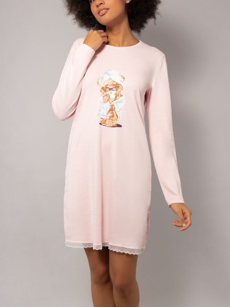 Camicia da notte girocollo L. 90 - PINK - M - PINK - TE28