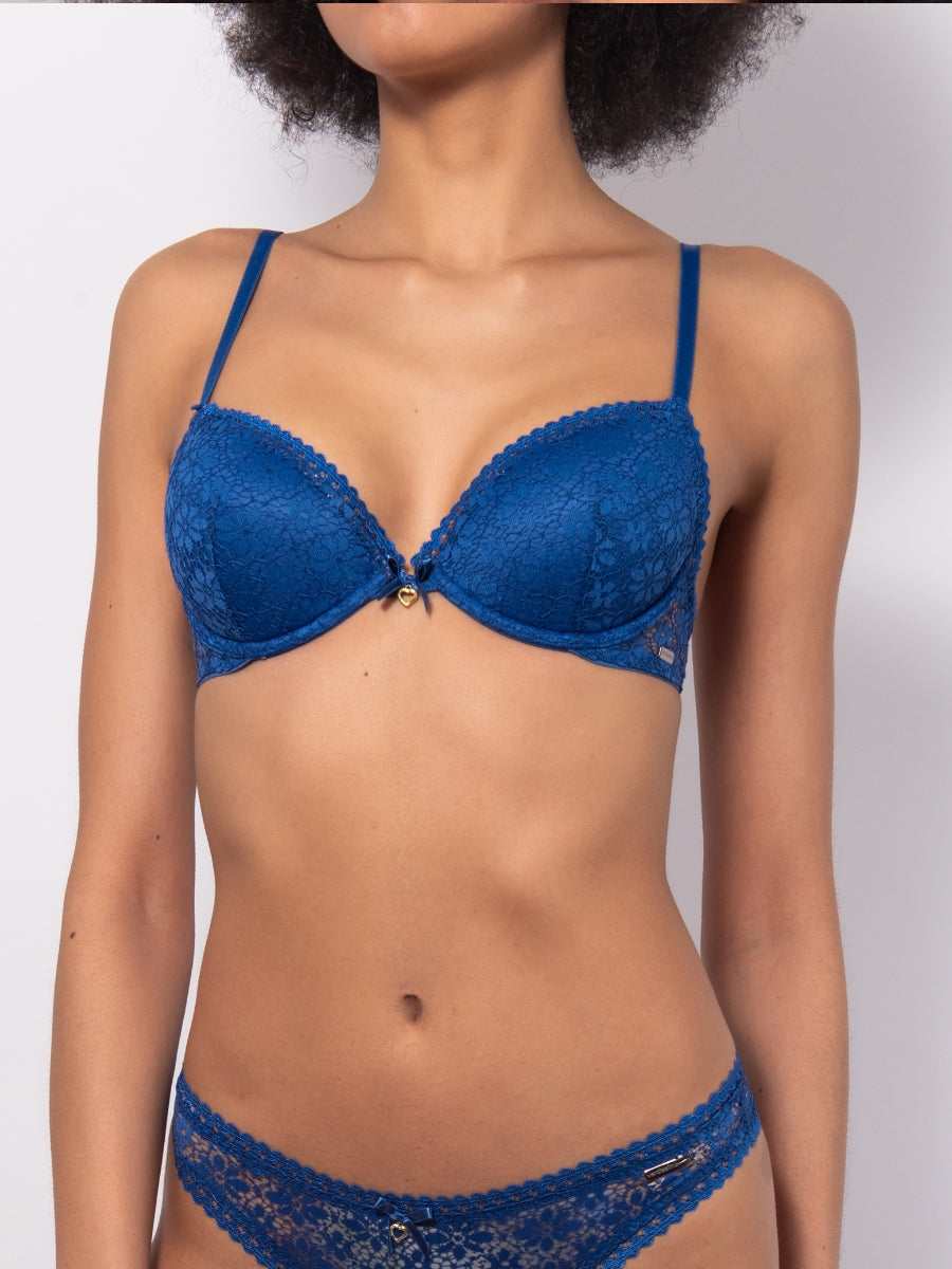 Reggiseno push-up con coppe imbottite, lunette estraibili e ferretto in pizzo - BLU - DL24