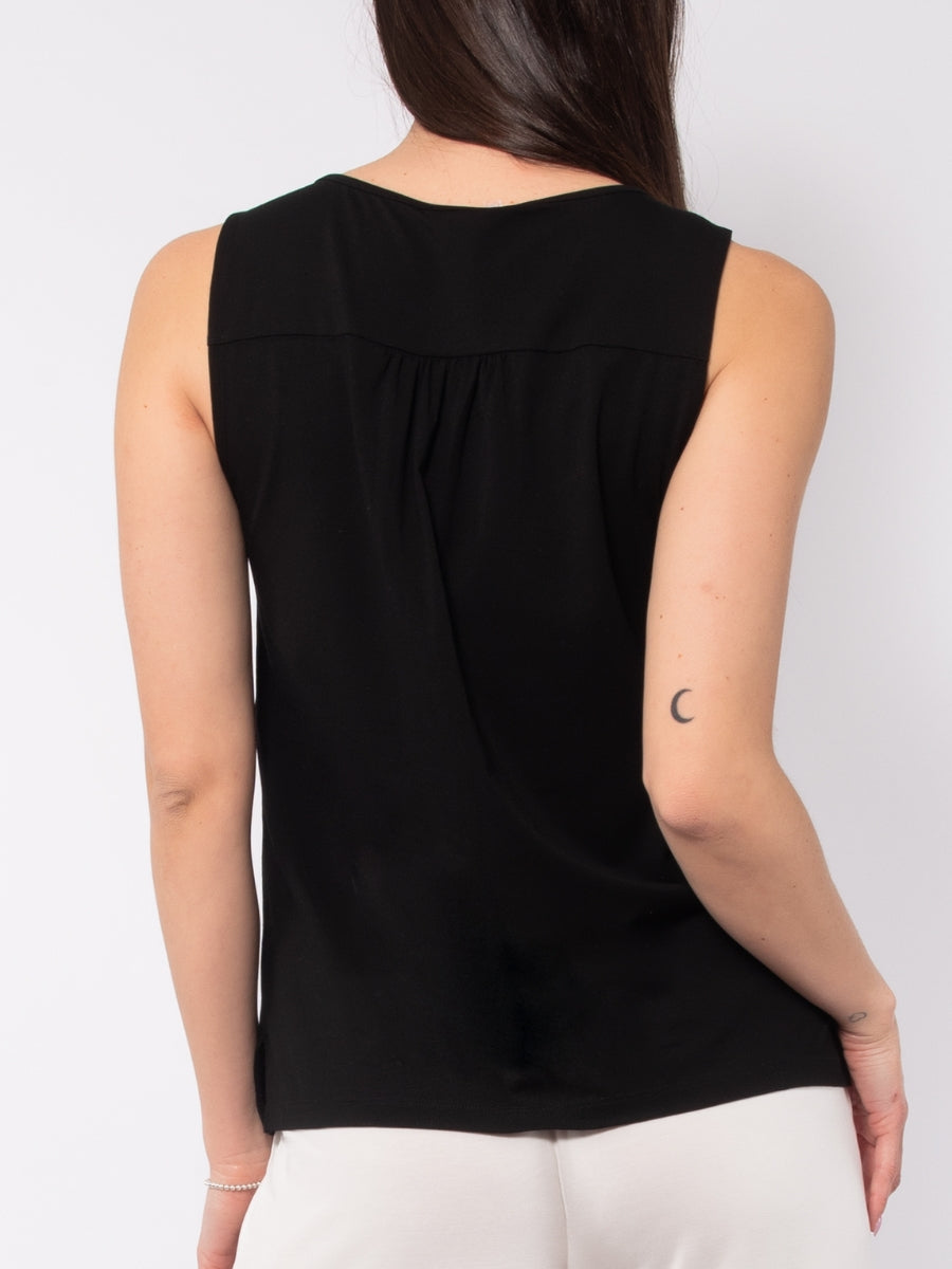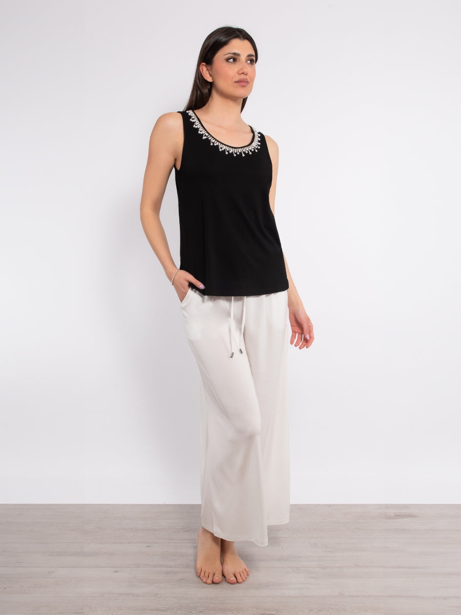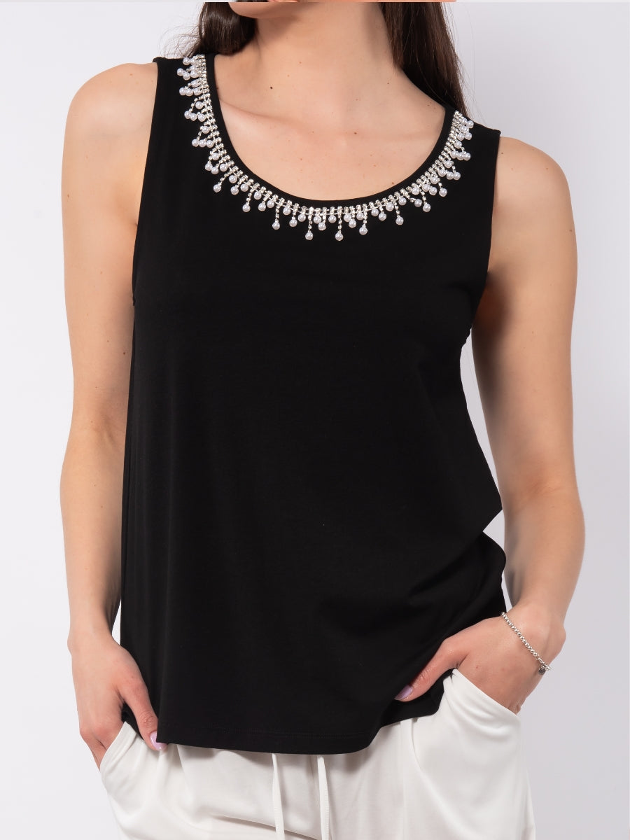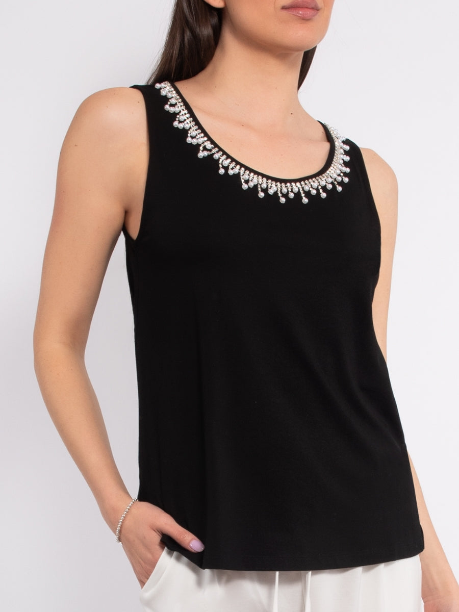 Canotta con strass in viscosa e cotone - NERO - TS14