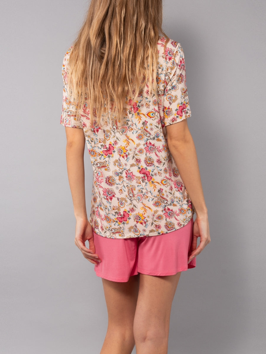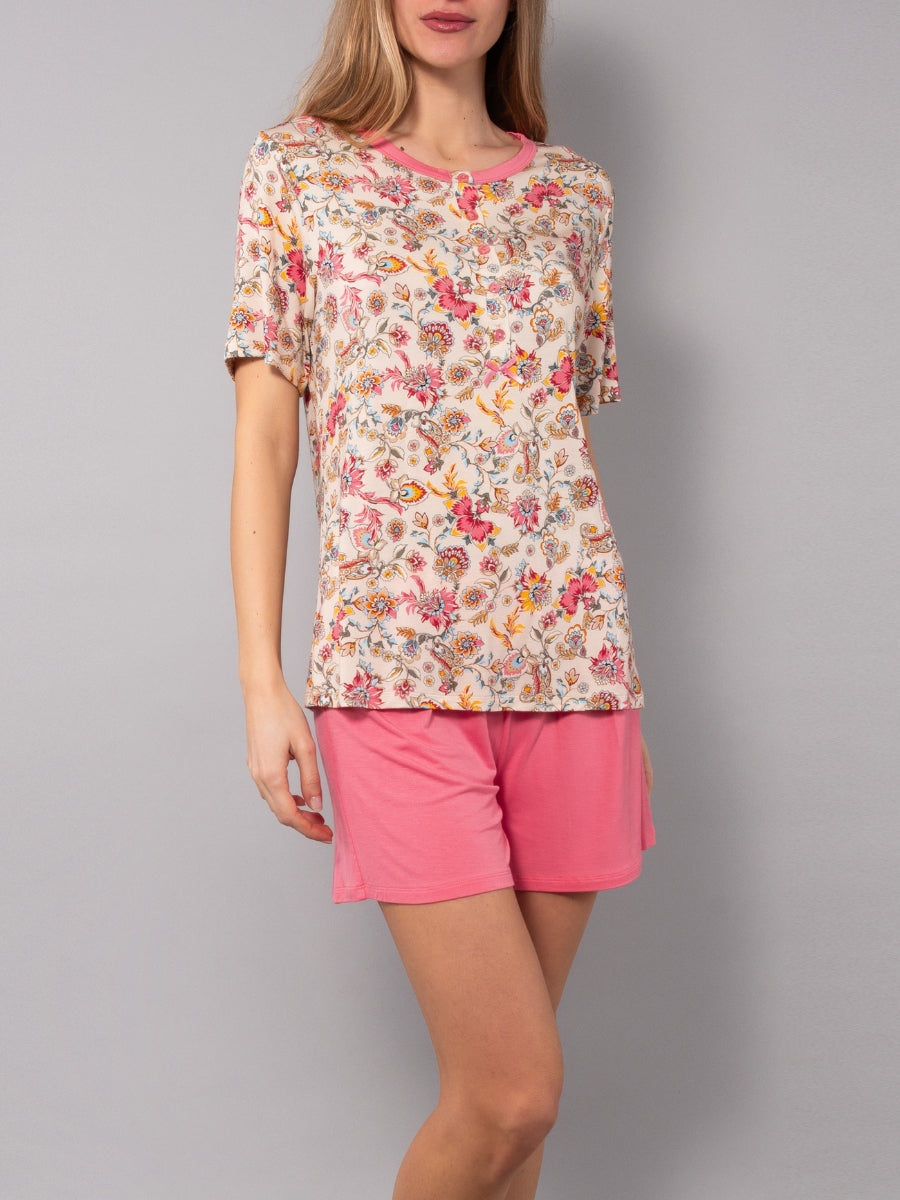 Pigiama Serafino Corto in Viscosa Lotus - ROSA - LO12