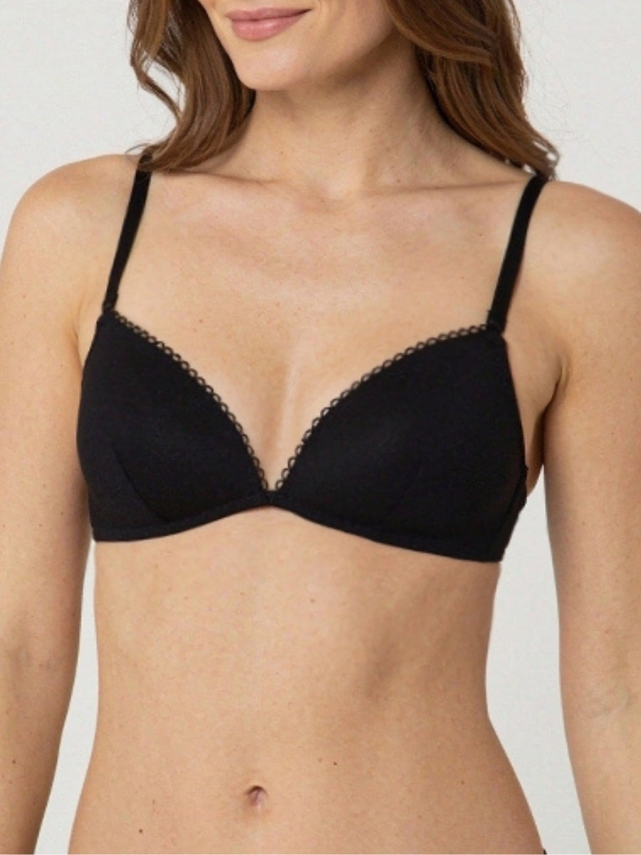 Il reggiseno a triangolo con coppe imbottite senza ferretto è ideale per chi cerca un capo pratico e comodo da indossare ogni giorno. Realizzato in tulle leggero effetto seconda pelle, assicura un sostegno delicato che valorizza le forme con naturalezza, garantendo la massima libertà di movimento.