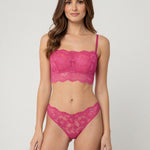 Realizzata in un pizzo floreale morbido e confortevole, questa brasiliana assicura una vestibilità perfetta ideale per l'uso quotidiano. Il disegno ricco e grafico del pizzo esprime una femminilità contemporanea e sofisticata. Ideale da coordinare con le diverse parti alte della collezione per un look completo e di carattere.