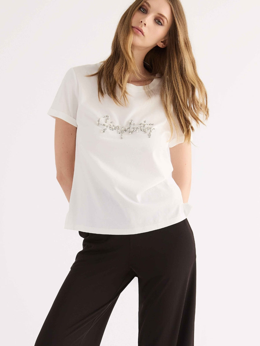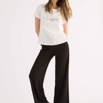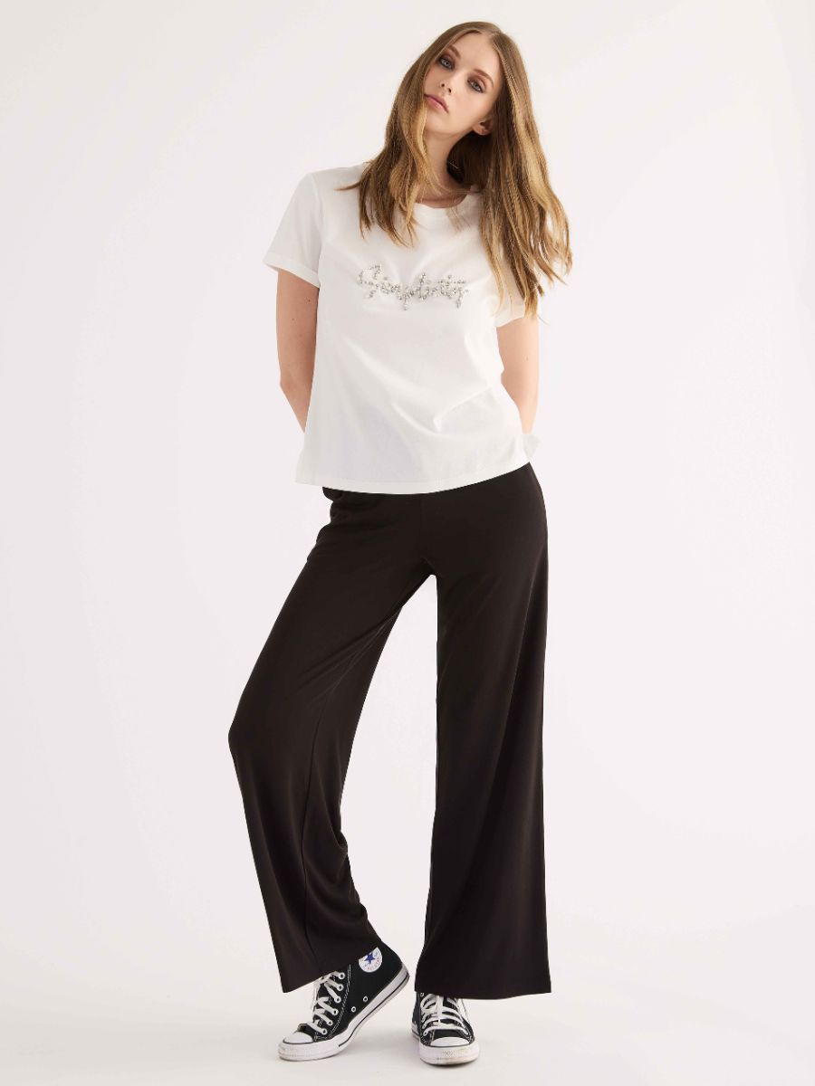 Pantaloni sportivi realizzati in morbida viscosa stretch, caratterizzati da un taglio a gamba ampia che dona fluidità e comfort. Il design è rifinito da un elastico alto in vita con coulisse regolabile, che garantisce una vestibilità perfetta in ogni occasione. Un passepartout versatile, ideale per completare look sportivi e casual, perfetto da abbinare alle felpe coordinate della stessa serie.