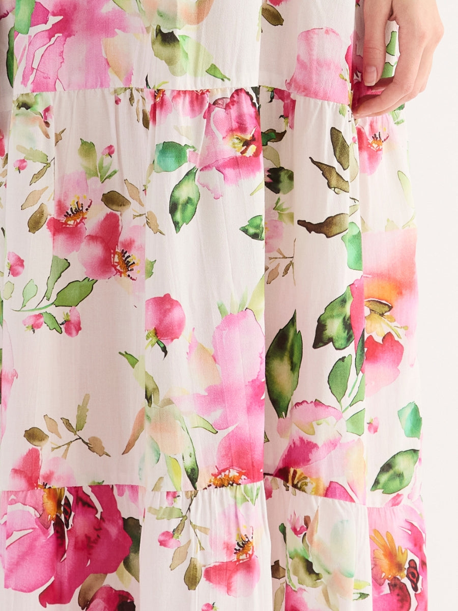 Abito Lungo a Balze con Stampa Floreale - FF82