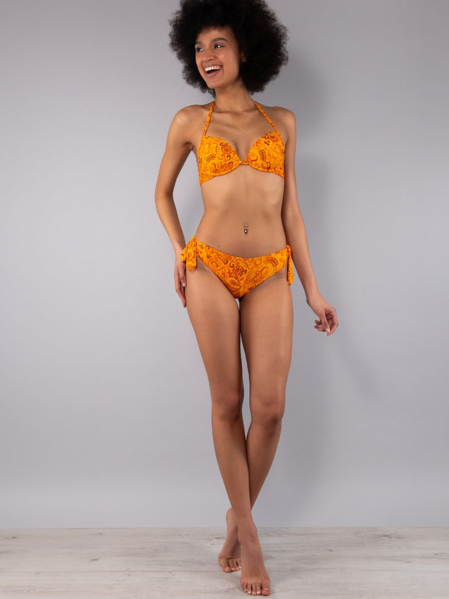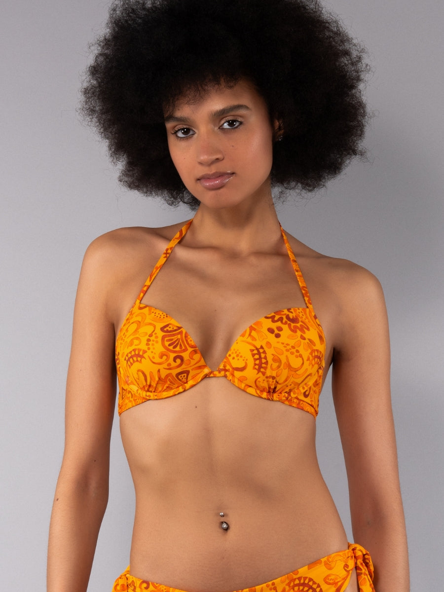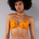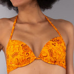 Push-up caratterizzato da un'esclusiva stampa etnica a contrasto. Il modello è dotato di coppe imbottite e lunette estraibili che permettono di personalizzare l’effetto volume dle décolleté, mentre il ferretto assicura un elevato sostegno.