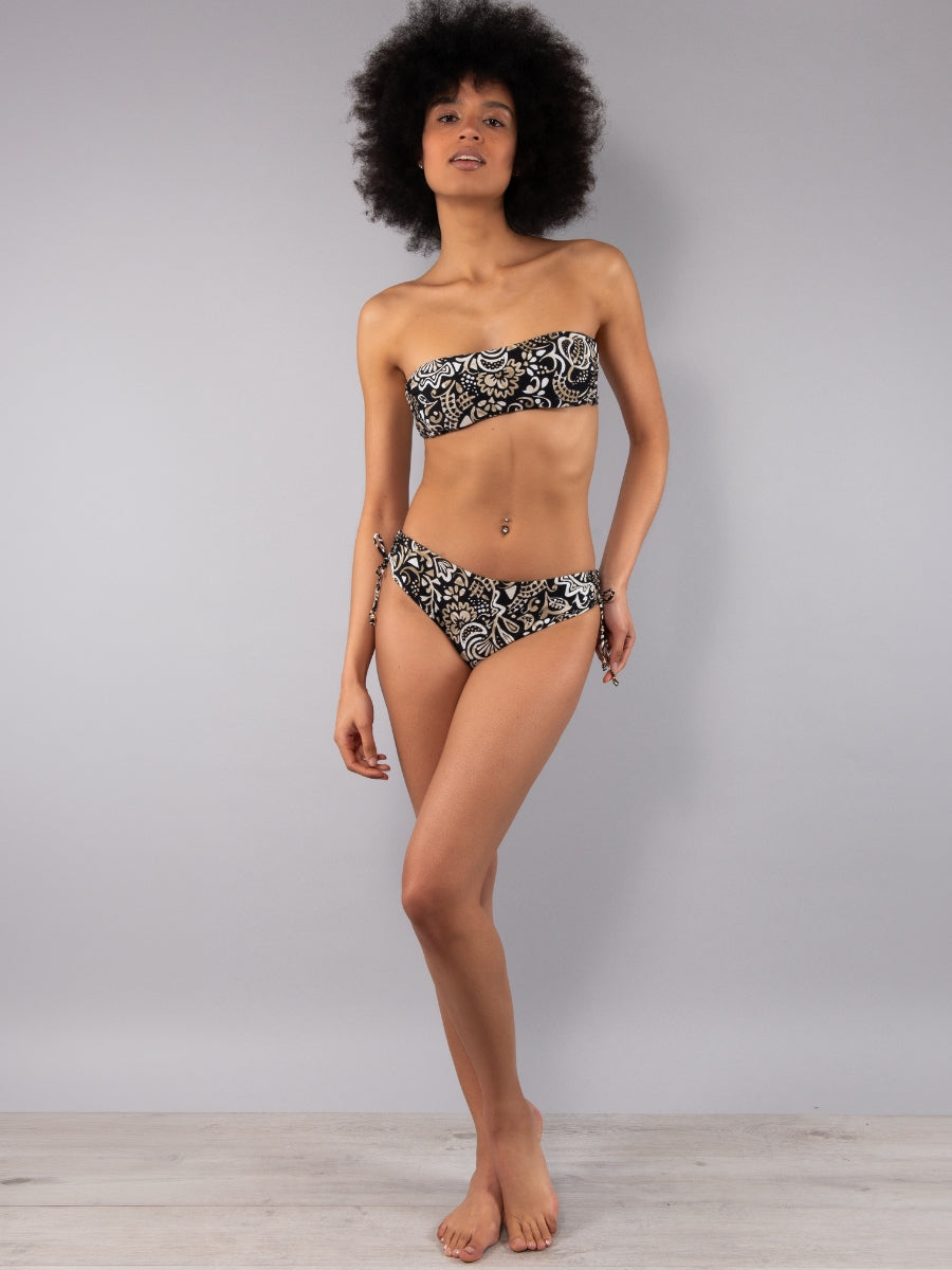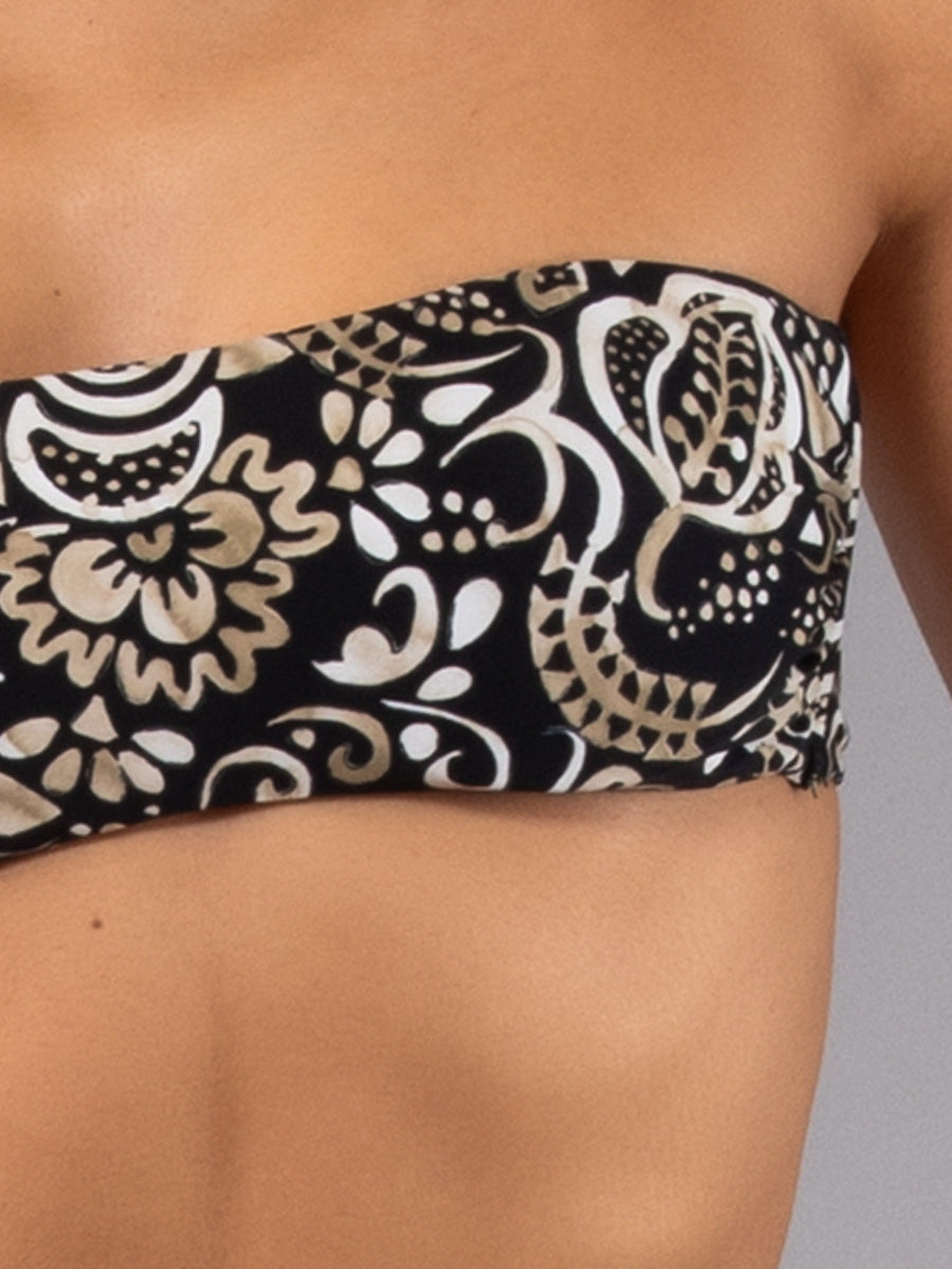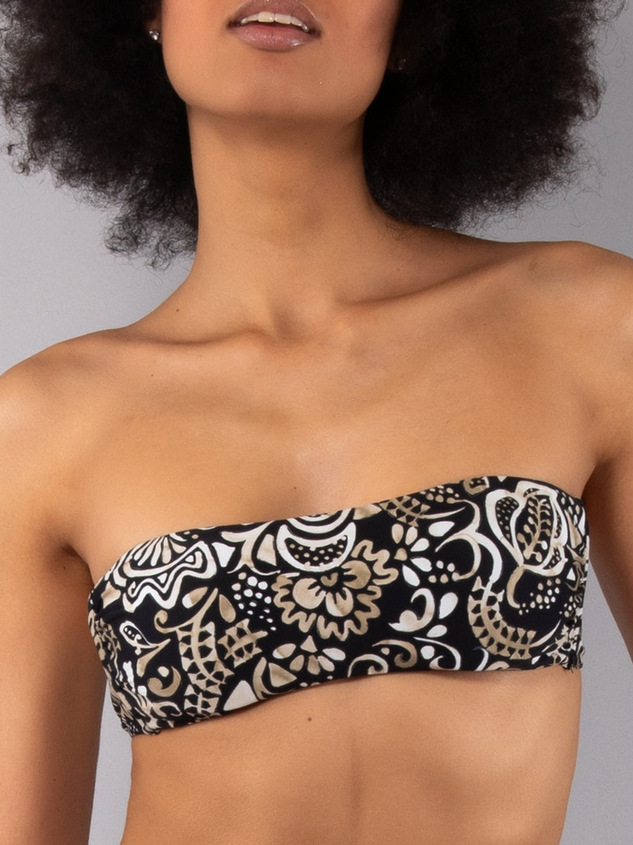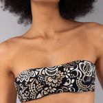 Fascia imbottita caratterizzata da un'esclusiva stampa etnica a contrasto. Il design essenziale presenta coppe imbottite estraibili che permettono di personalizzare l'effetto volume, garantendo un sostegno confortevole e una vestibilità impeccabile. Il modello è completato da una spallina removibile in dotazione.