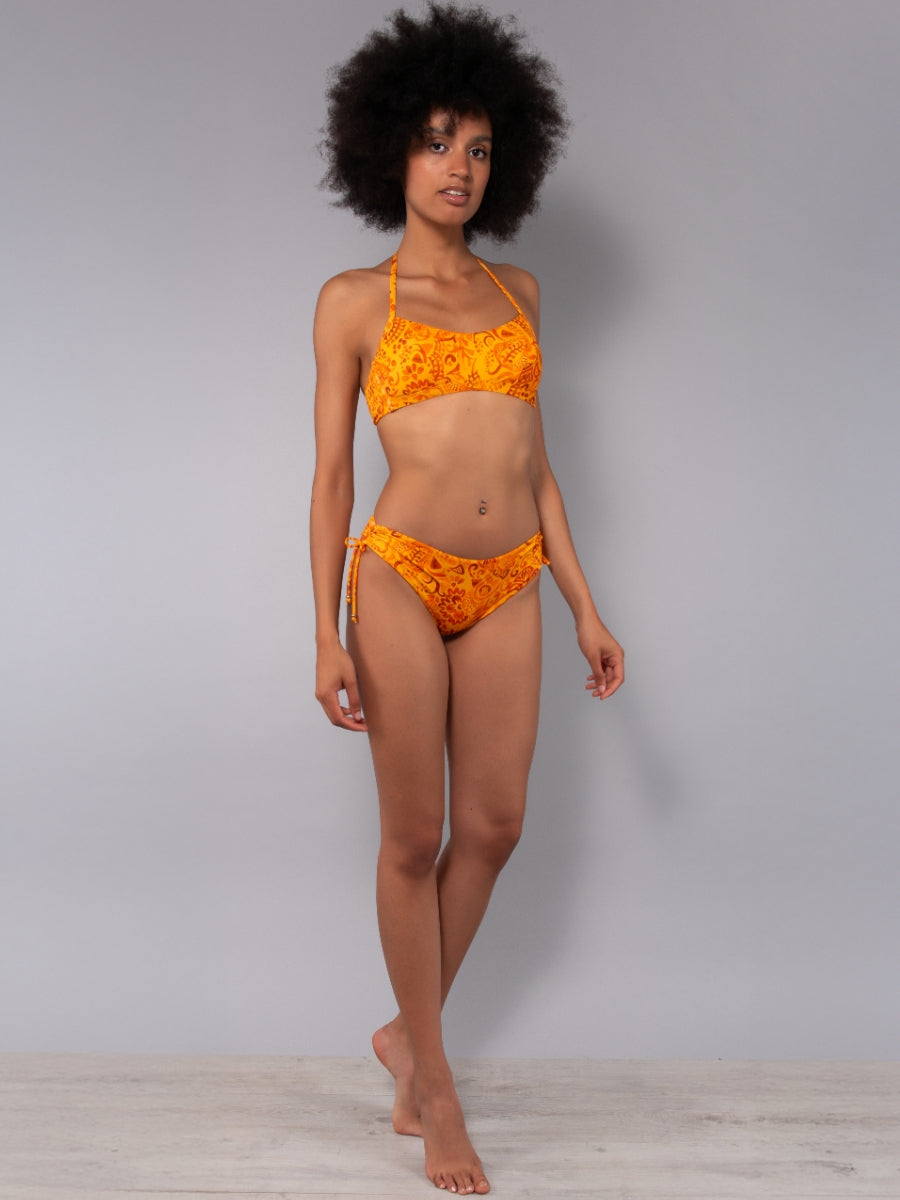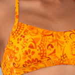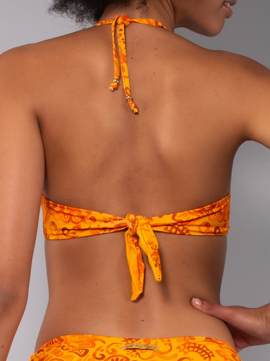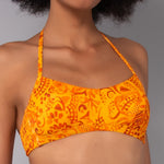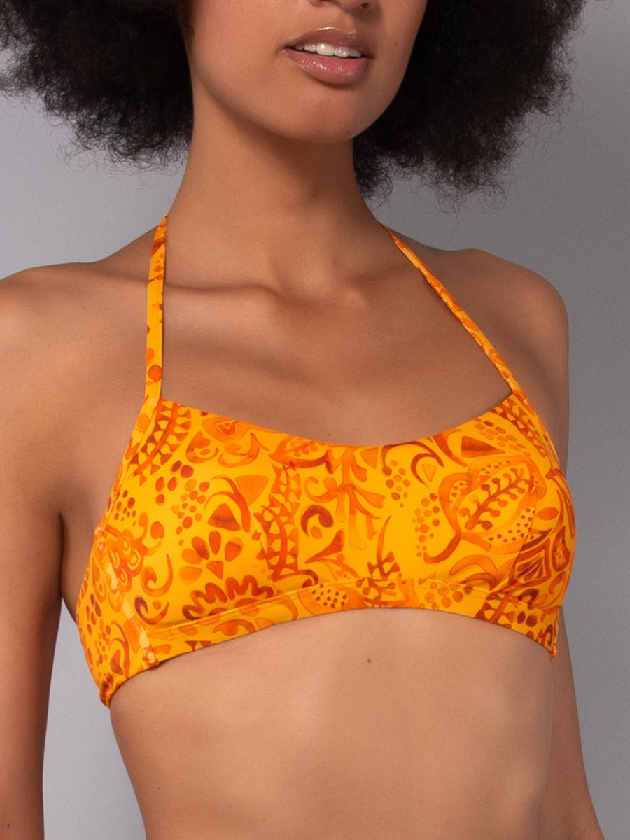 Top con coppe imbottite caratterizzato da un'esclusiva stampa etnica a contrasto. Il design essenziale presenta coppe imbottite estraibili che permettono di personalizzare l'effetto volume, garantendo un sostegno confortevole e una vestibilità impeccabile. Allacciatura regolabile sulla schiena e dietro al collo.