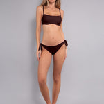Top con ferretto, progettato per garantire comfort e supporto alle coppe differenziate C. La struttura è dotata di ferretto invisibile che sostiene il décolleté, mentre l’assenza di imbottitura assicura una vestibilità comoda. Allacciatura sul retro e spalline regolabili. Il design del costume da bagno è completato dal accessori gold che aggiungono un tocco di luce.