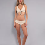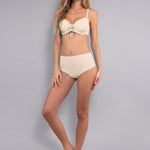 Slip a vita alta progettato per offrire una vestibilità confortevole e personalizzabile. Il design è caratterizzato dalla fascia superiore con risvolto che permette di regolare l'altezza dello slip a piacere, adattandosi perfettamente alla silhouette. L’eleganza ricercata del tessuto opaco in tinta unita esalta il taglio del costume: una scelta di stile pensata per beachwear look sofisticati ed essenziali.
