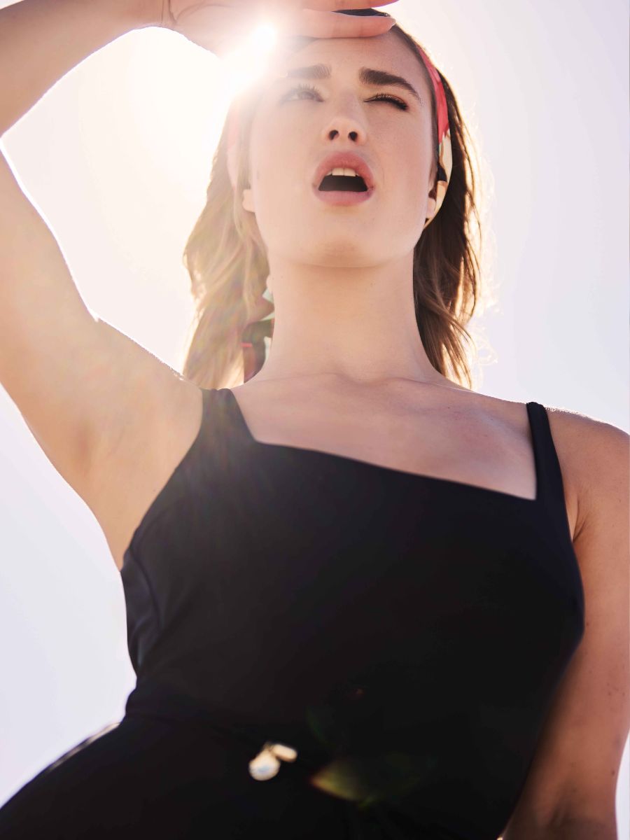 L’eleganza ricercata del tessuto opaco in tinta unita esalta il taglio del costume: una scelta di stile pensata per beachwear look sofisticati ed essenziali.